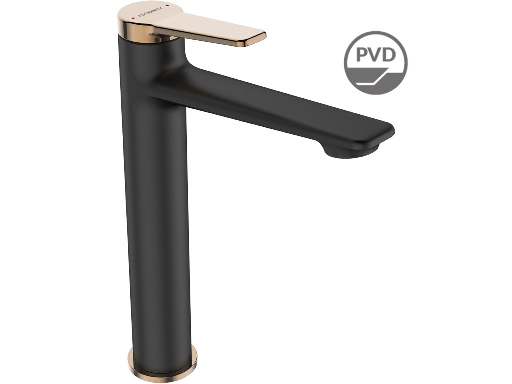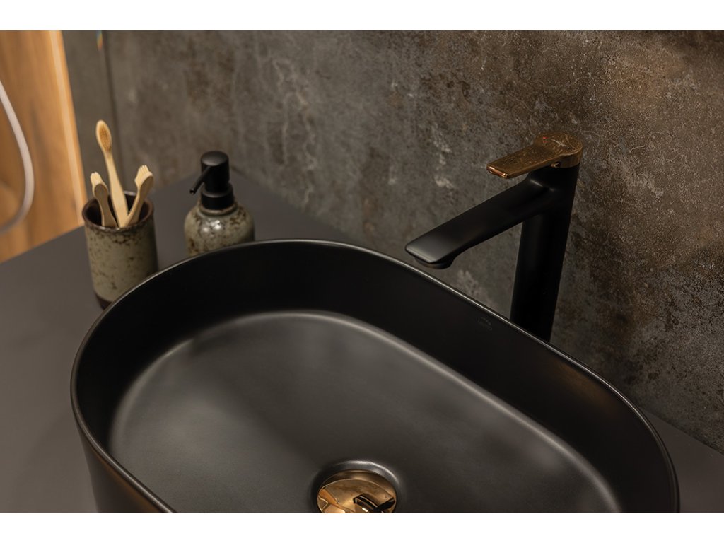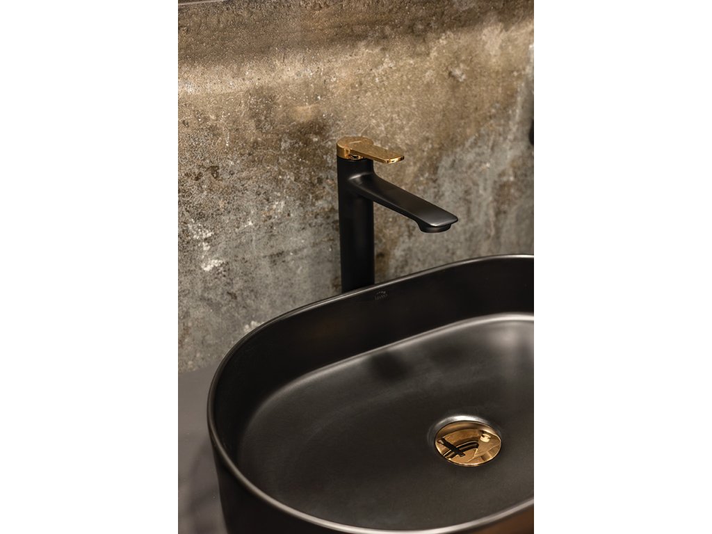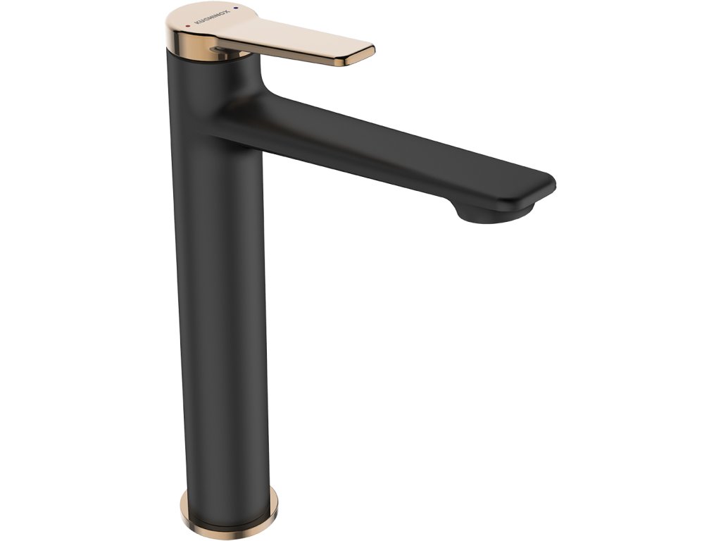 ALANIS stojací umyvadlová baterie černá růžové zlatoŘada baterií Alanis s jemnými tvary je krokem k současným trendům. Kromě standardních modelů koupelnových baterií řada zahrnuje také umyvadlovou baterii na desku a umyvadlovou baterii s výtokem ve tvaru „L“ a boční pákou. Koupelnové a kuchyňské baterie dostupné v bílé nebo černé barvě. Pro změnu jsou však páky a rozety baterií (a u některých modelů i výtoky) povrchově upraveny v růžovém zlatě a zlaté barvě. Tento efekt dodá interiéru nádech modernity. To bude perfektní volba pro koupelny v newyorském nebo glamour stylu. Dřezové baterie jsou k dispozici také v celochromovém a černém provedení.