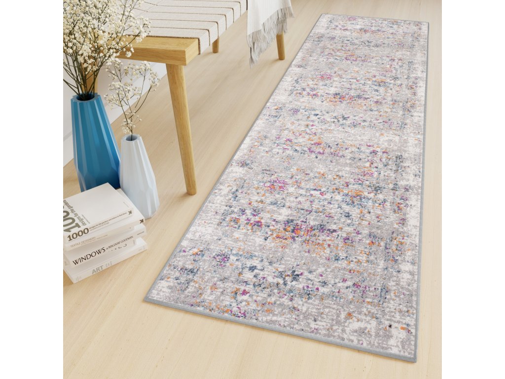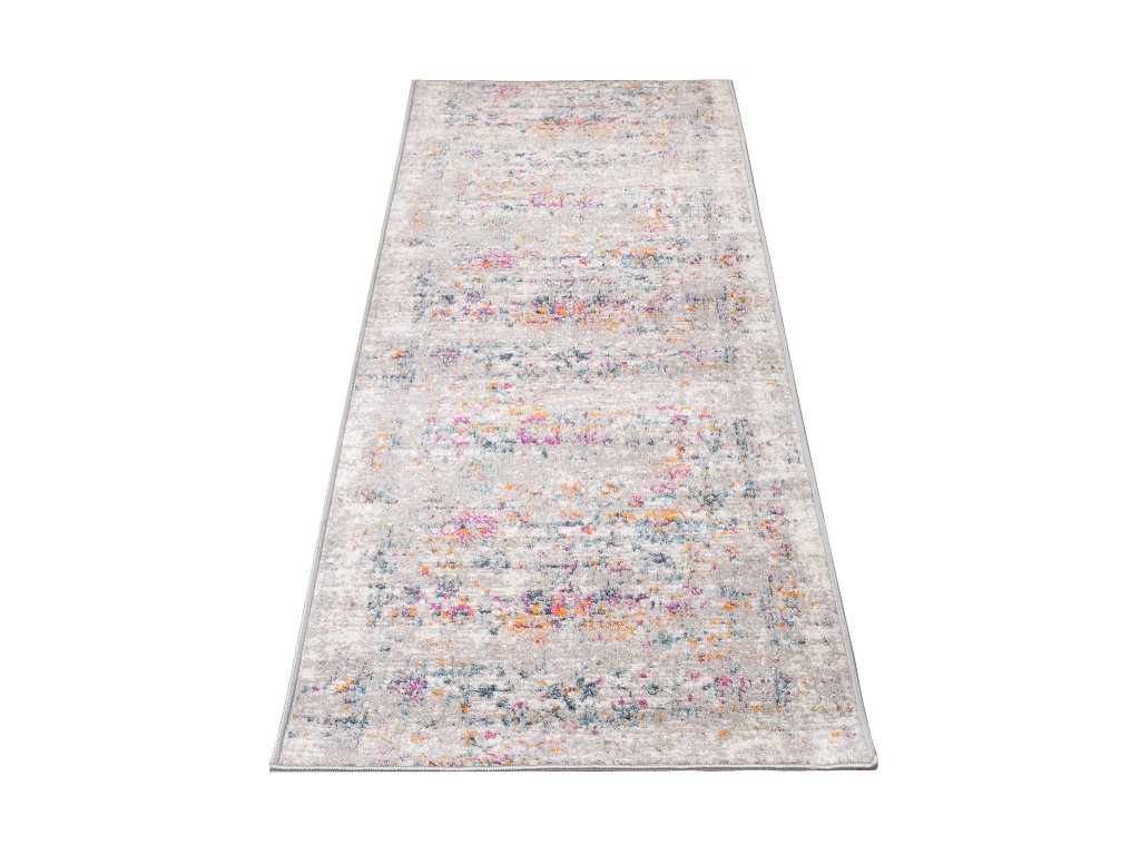 Běhoun LAZUR D255A vícebarevnýKoberce a běhouny Lazur velmi měkké a milé v doteku, díky speciální polypropylénové přízi Calping Frise. Vlákna tvoří hustý hrubý vlas s výškou 9 mm a váhou koberce 1,40 kg/m2. Technologie Calping frise přiblížila tyto koberce co do kvality vlasu ke kobercům vlněným, s tím, že si uchovaly všechny výhody koberců syntetických. Koberce se dobře udržují a stačí je vysát, nebo na větší nečistoty navlhčený hadřík. Koberce lazur to je pestrá směs vzorů a barev.