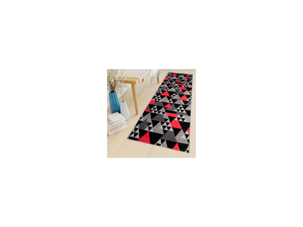 Běhoun MAYA Z900E Trojúhelníky černý červený s moderním geometrickým vzorem.