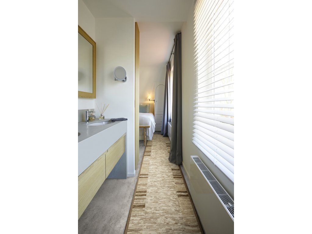 Nízký, kompaktní smyčkový vlas koberce je odolný a snadno se udržuje v čistotě.