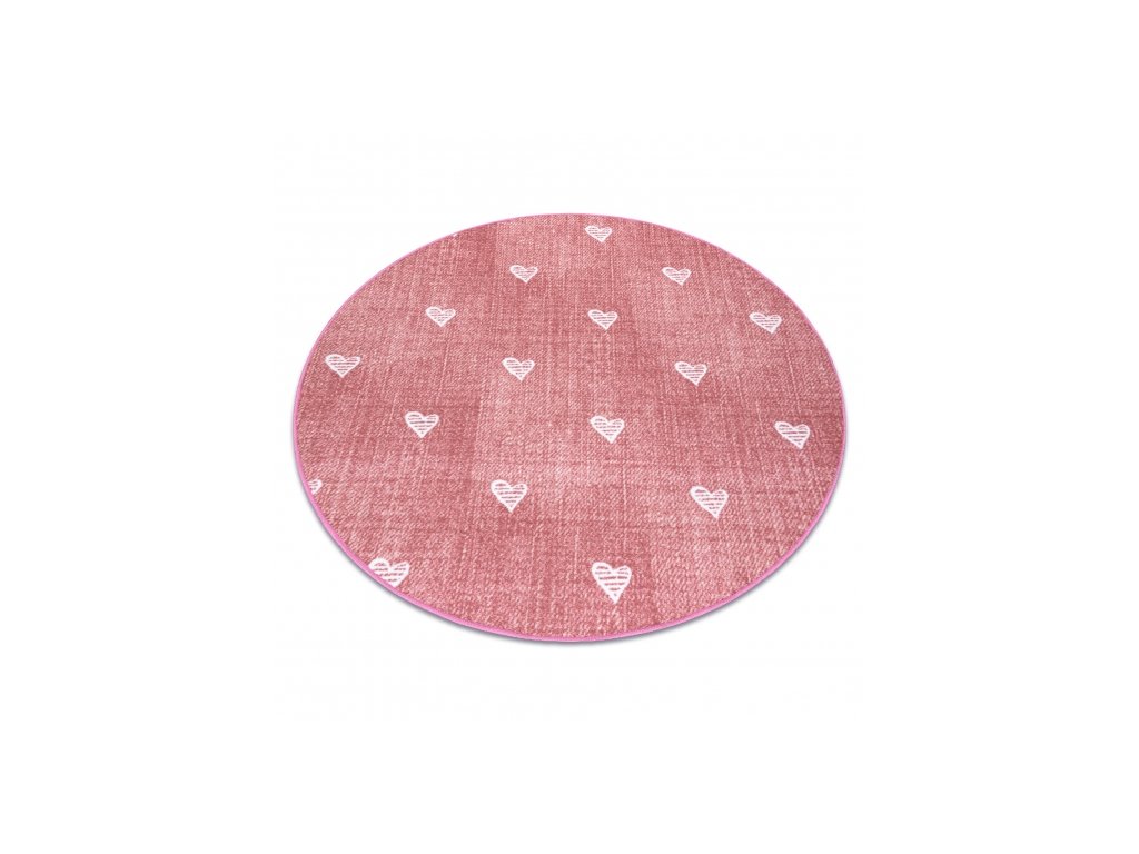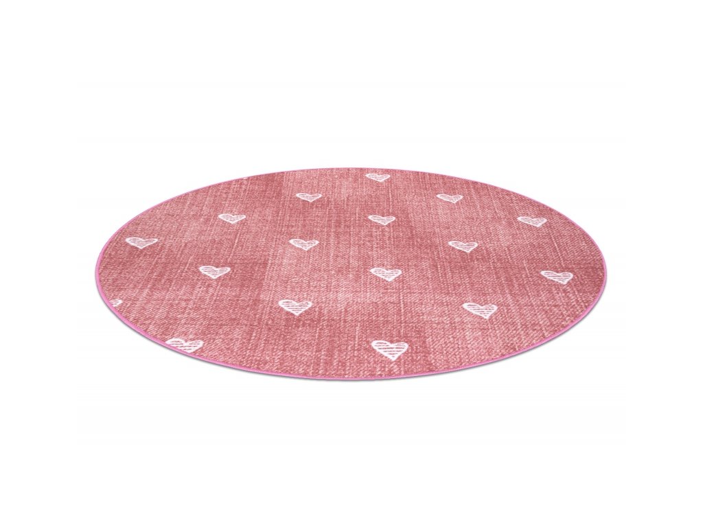 Dětský kulatý koberec HEARTS Srdíčka Růžový