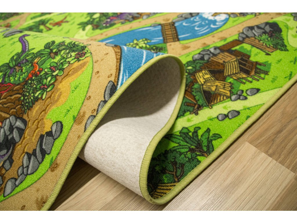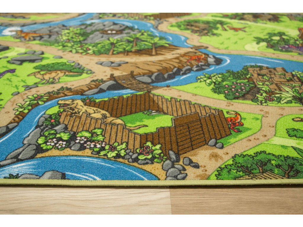 Dětský koberec je vyrobený z kvalitní polyamidové příze s celkovou výškou 6,5 mm. Tento koberec je určen pro všechny děti které mají rádi zvířátka a zvláště dinosaury.