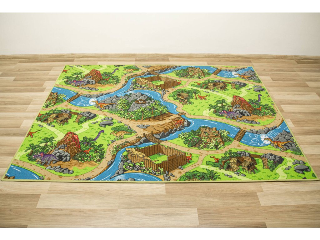 Dětský kusový koberec Dino Vesnička Dinosaurů zelený modrý