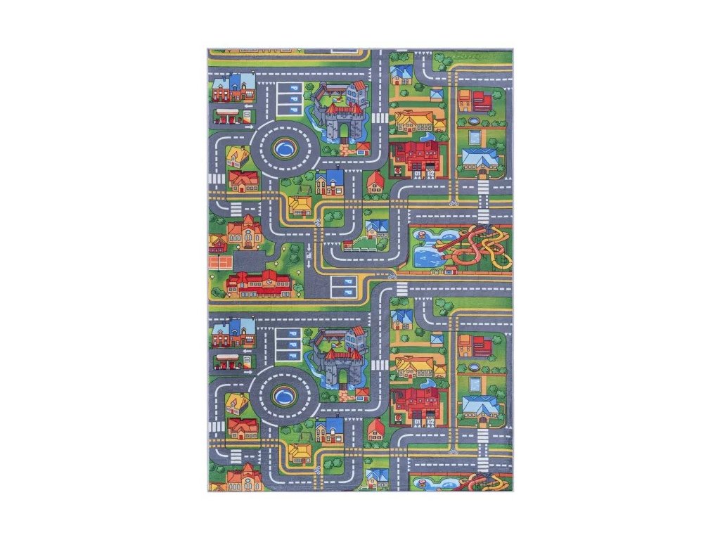 Dětský kusový koberec FLANNEL PRINTED B-529 Město Ulice šedý zelený