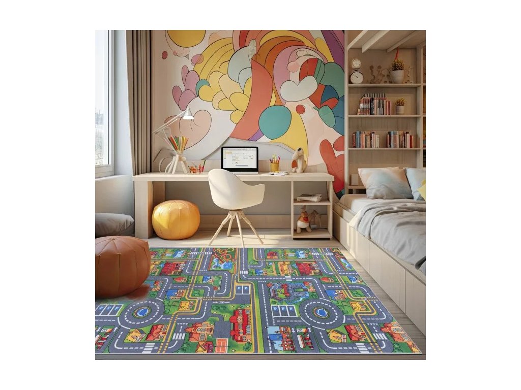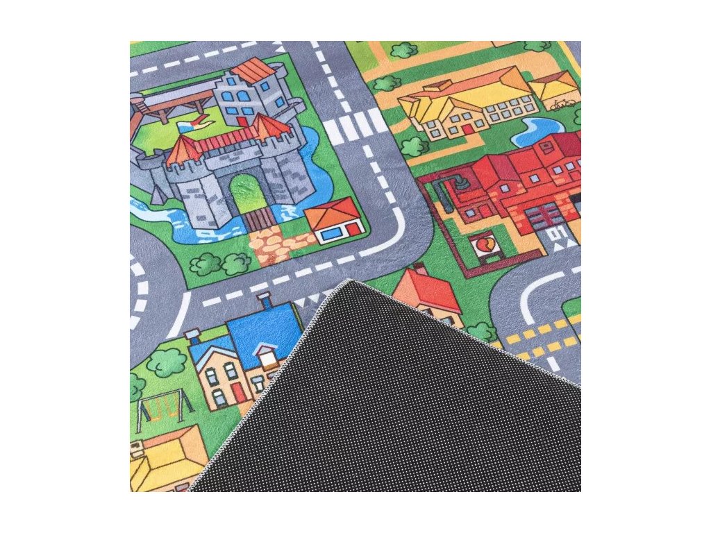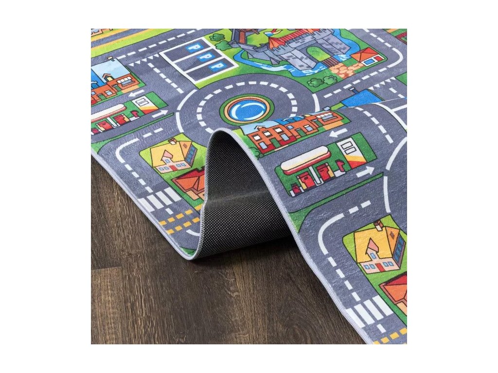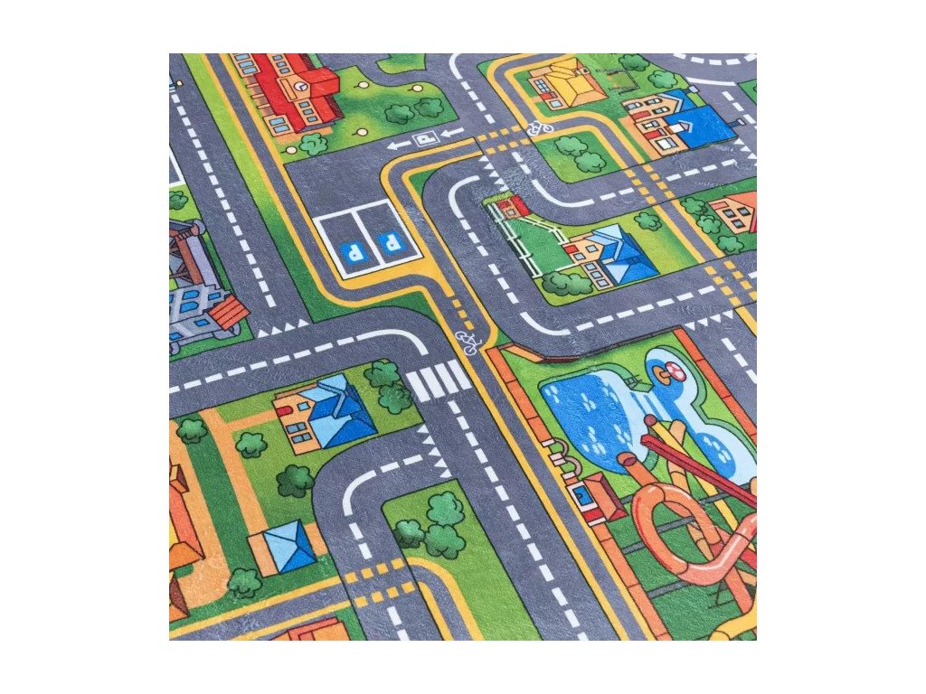 Dětský kusový koberec FLANNEL PRINTED B-529 Město Ulice šedý zelenýKolekce dětských a moderních koberců Flannell Printed je záruka pohodlí, komfortu a bezpečí a zároveň odpružení proti bolestivému pádu.