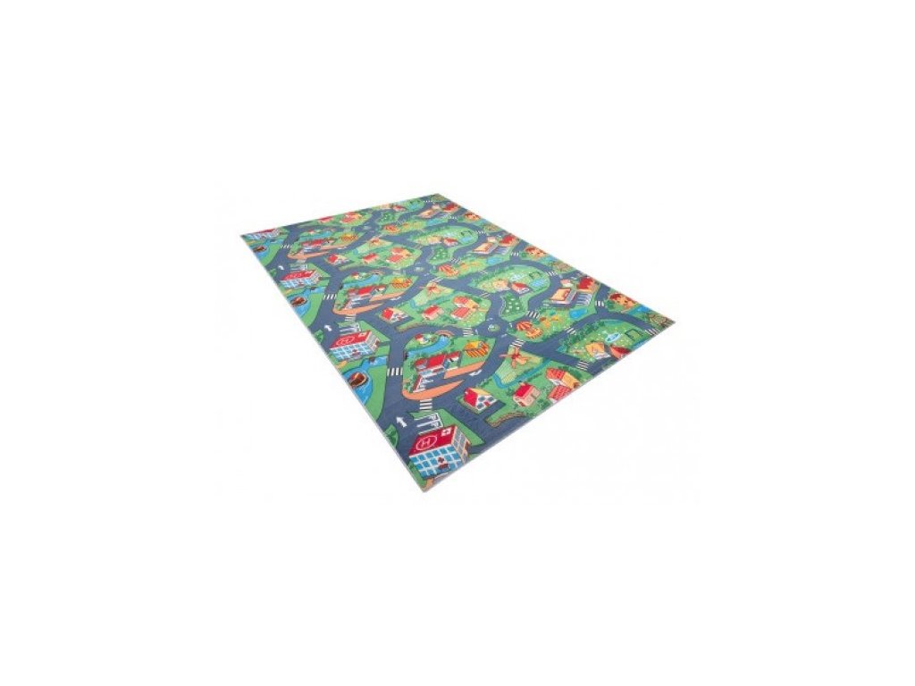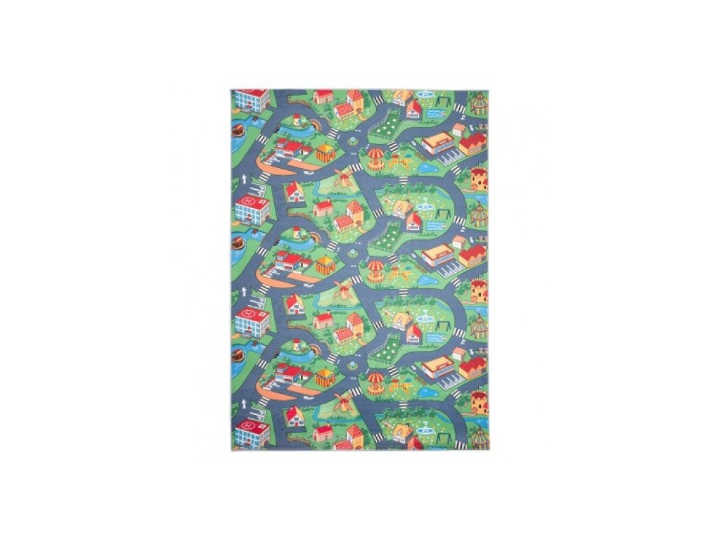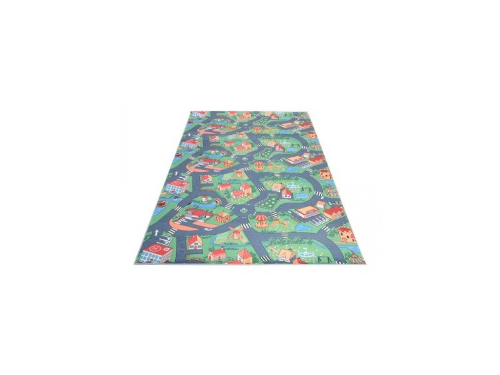 Dětský kusový koberec FLANNEL PRINTED B-601 Uličky Město zelený šedýKolekce dětských a moderních koberců Flannell Printed je záruka pohodlí, komfortu a bezpečí a zároveň odpružení proti bolestivému pádu.