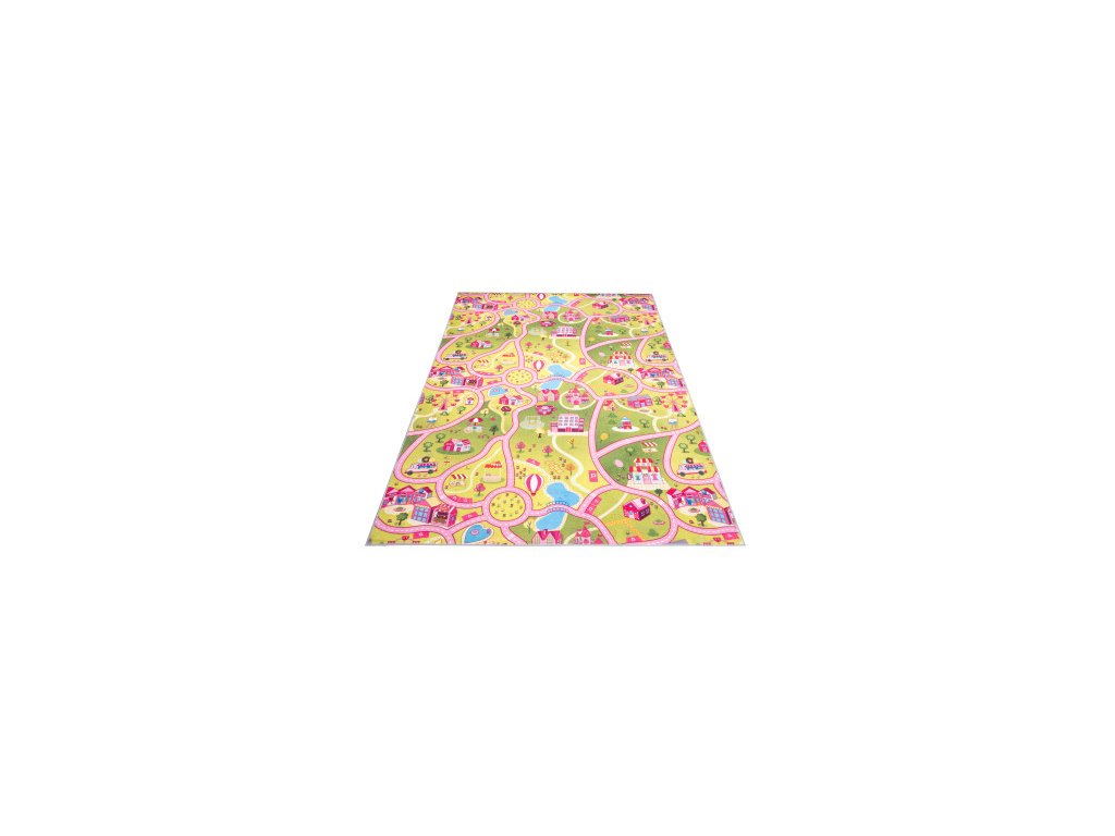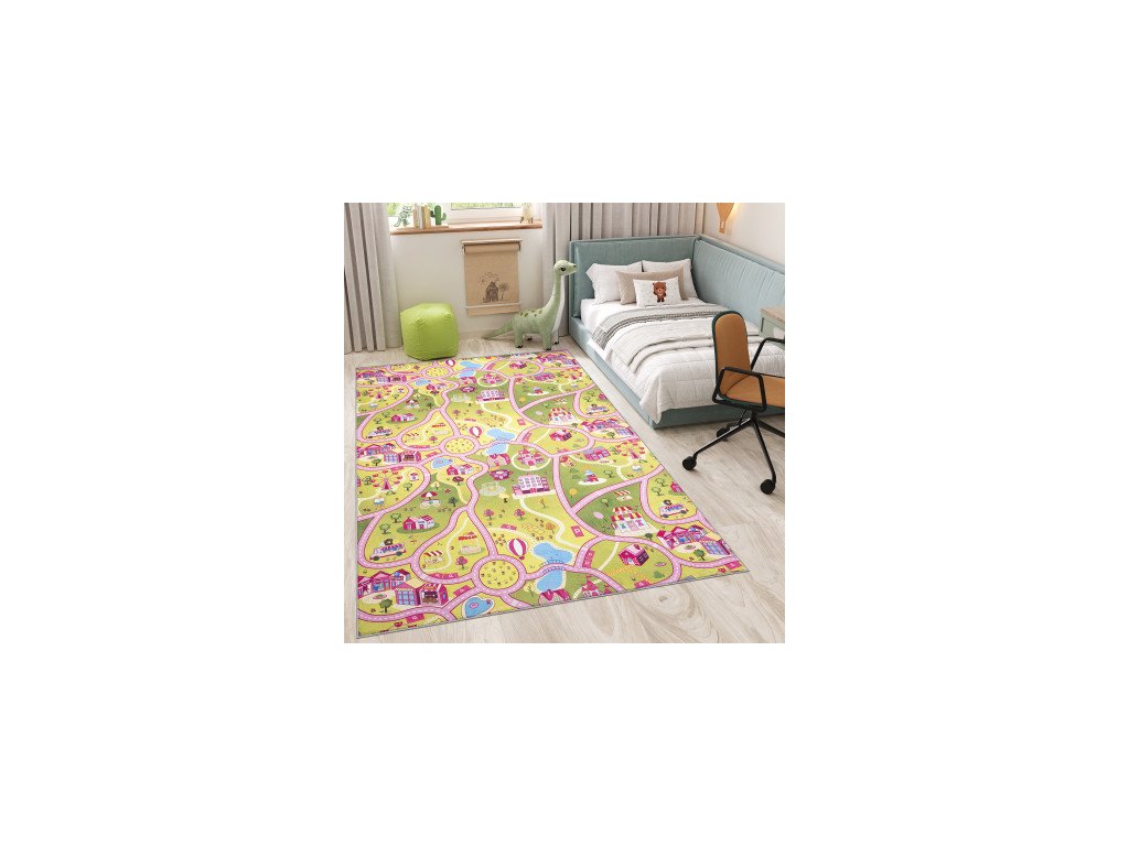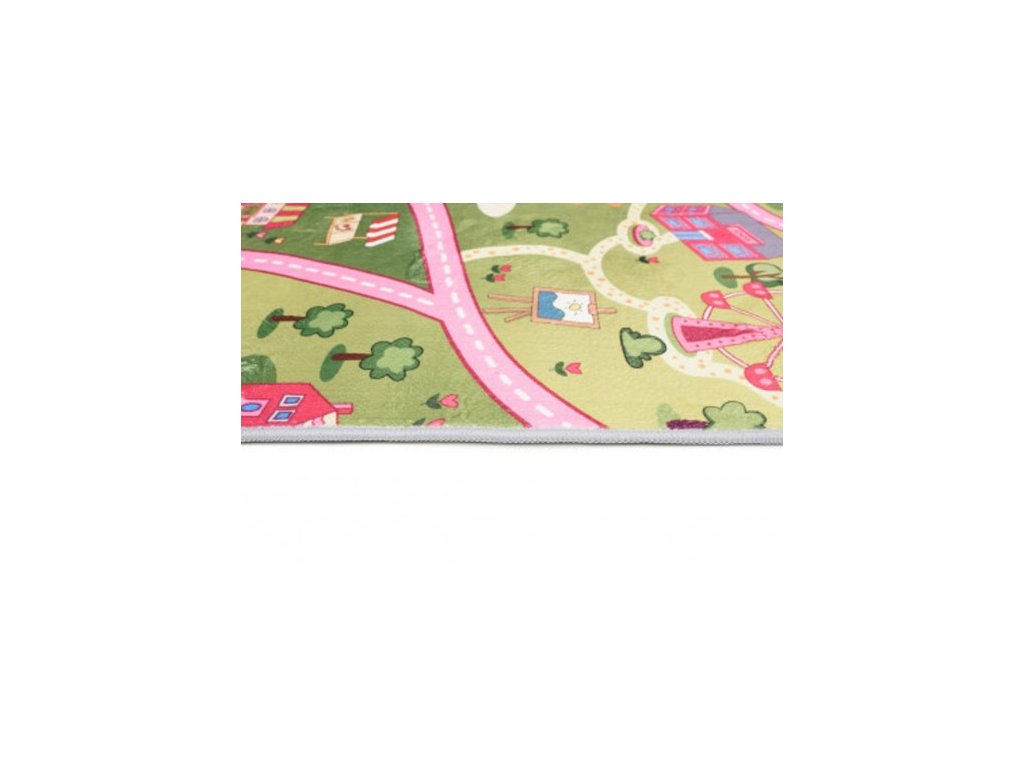 Dětský kusový koberec FLANNEL PRINTED JWH Město Cesta zelený růžový