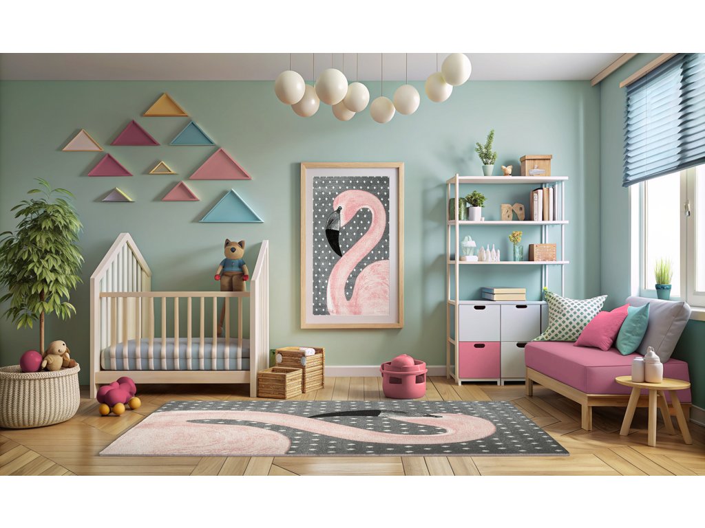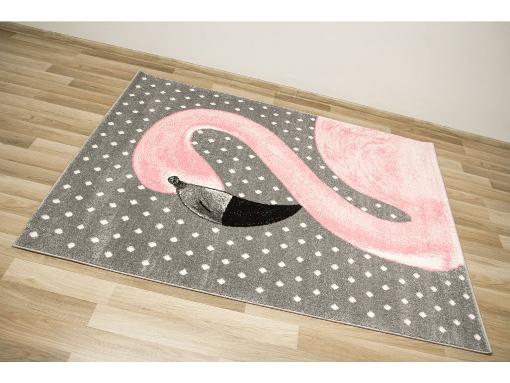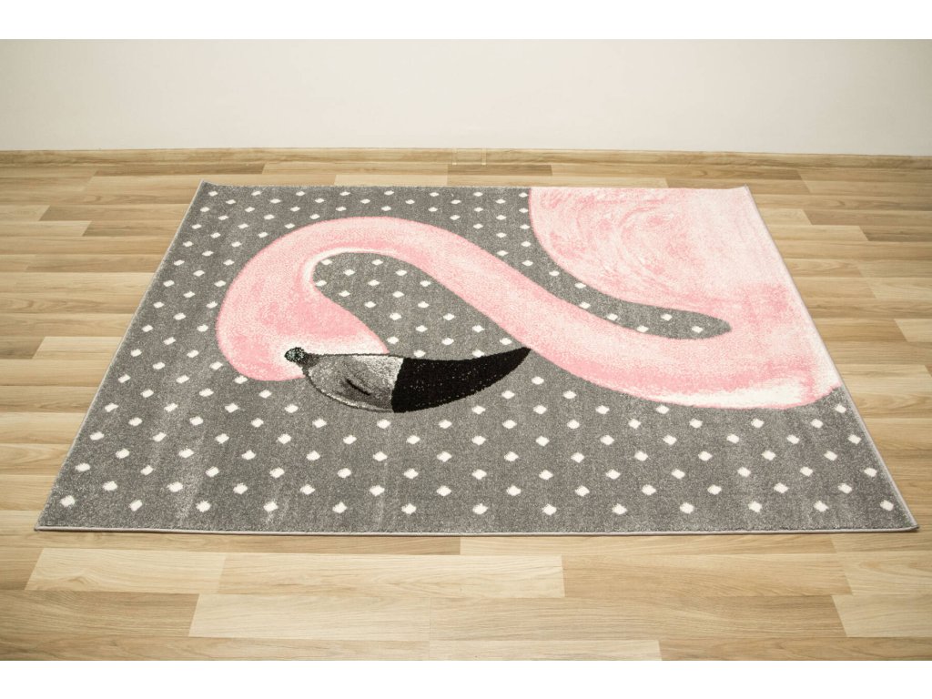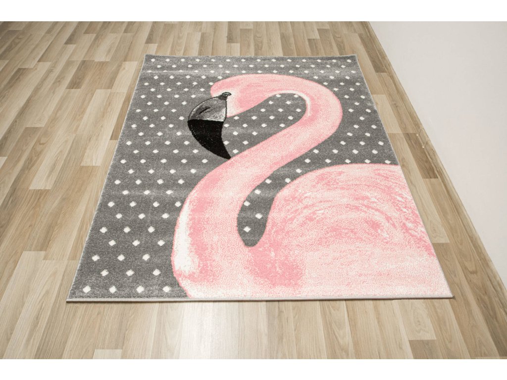 Dětský kusový koberec Lima 1206A Plameňák šedý růžový