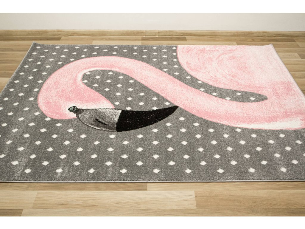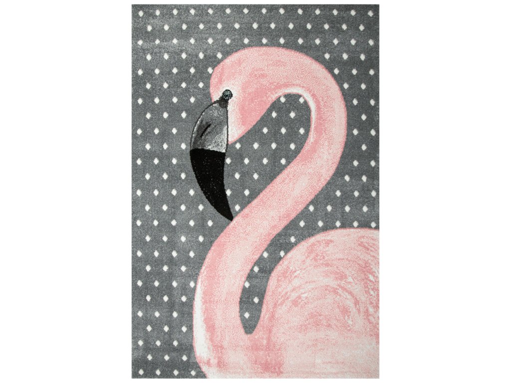 Dětský kusový koberec Lima 1206A Plameňák šedý růžový