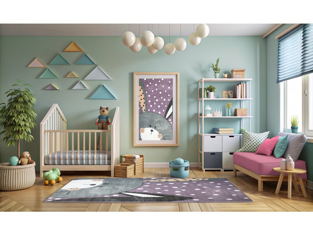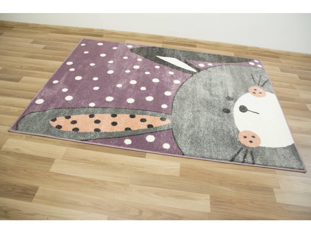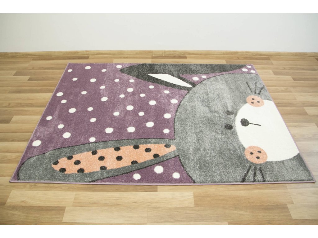 Dětský kusový koberec Lima 1316C Králíček fialový šedý