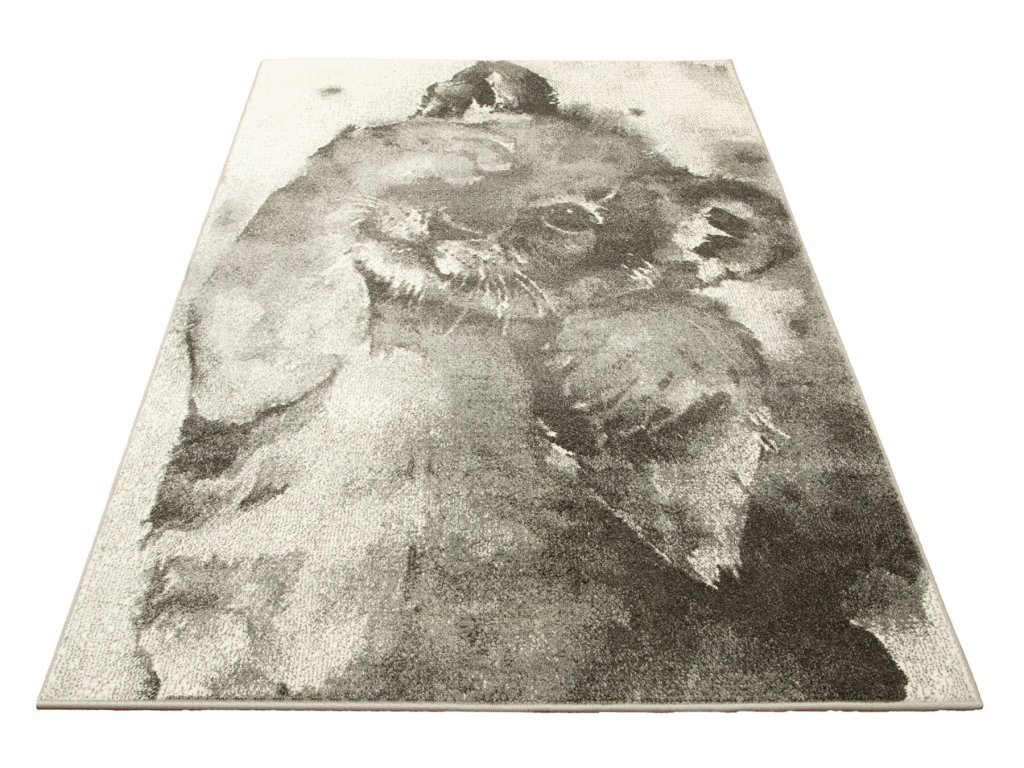 Dětský kusový koberec Lima 9377C Králíček Brýle šedý krémový