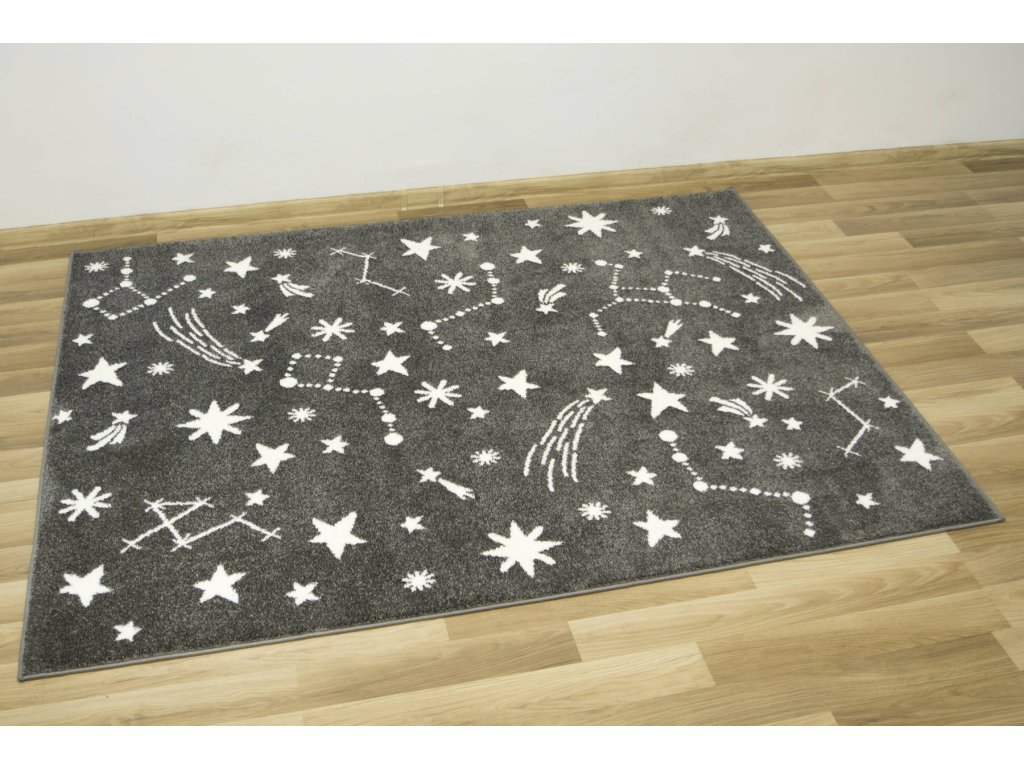 Dětský kusový koberec Lima 9572A Večerní Nebe Vesmír Hvězdy šedý krémový