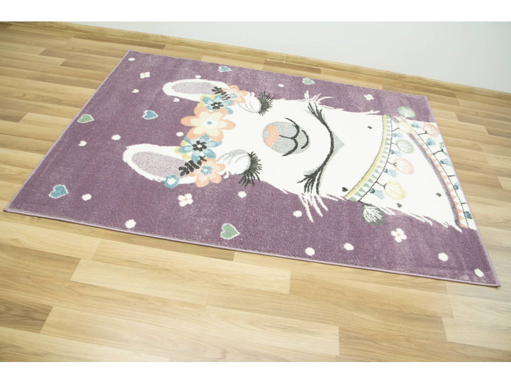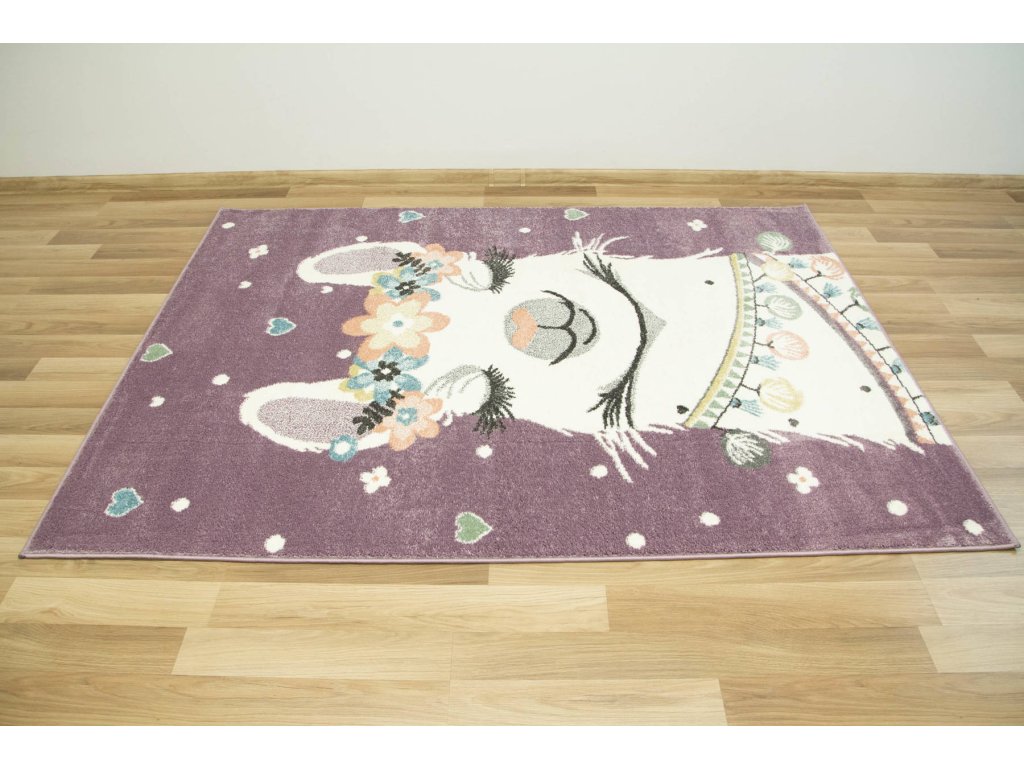 Dětský kusový koberec Lima C882B Lama fialový krémový