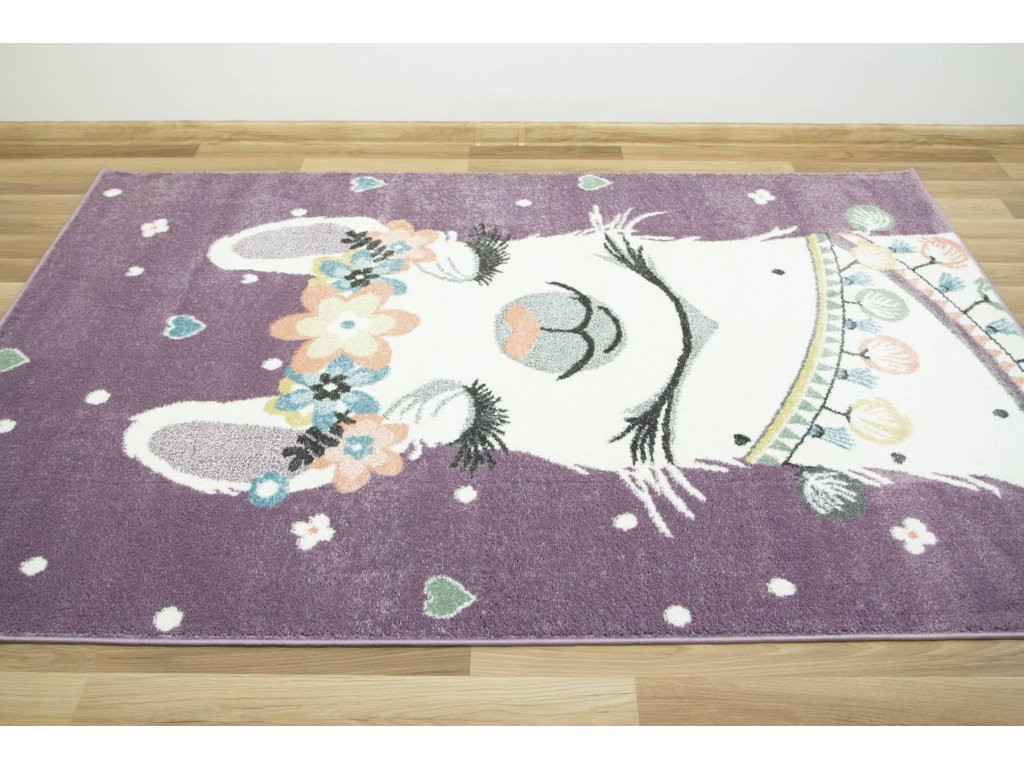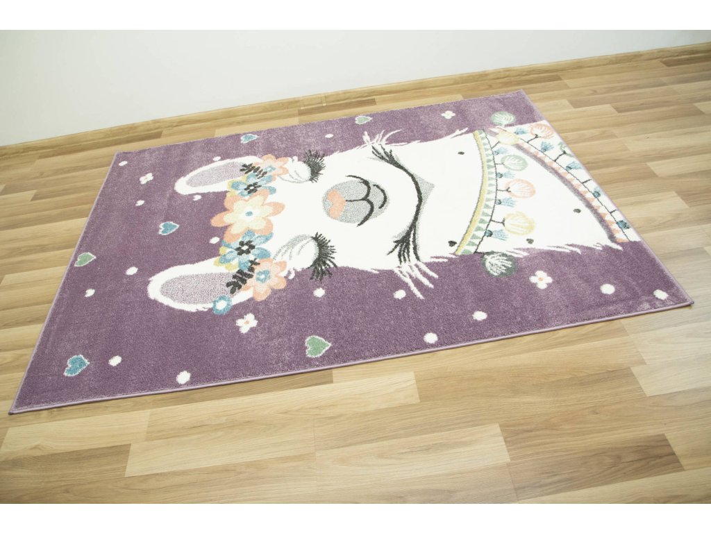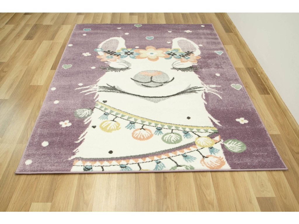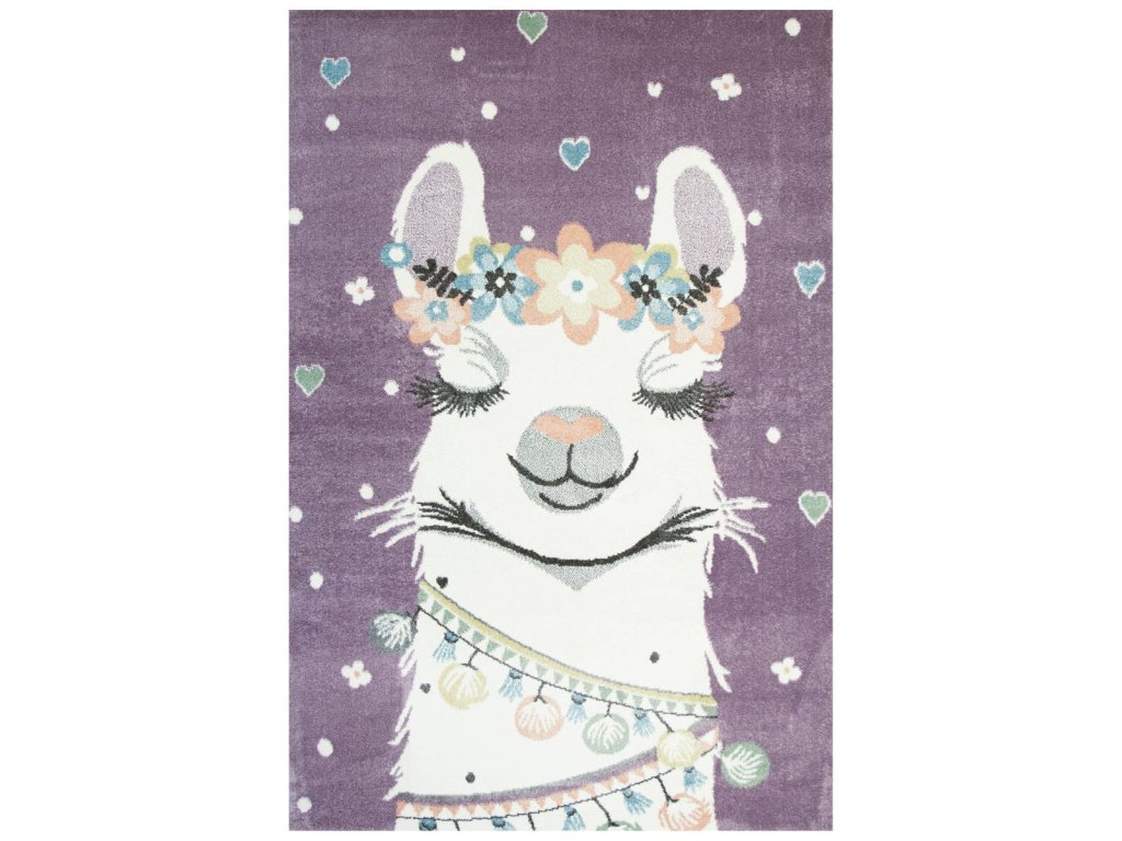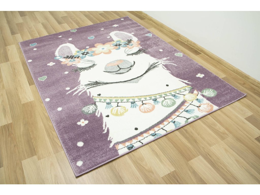 Dětský kusový koberec Lima C882B Lama fialový krémový