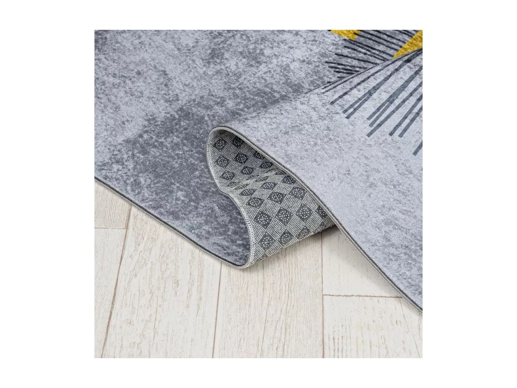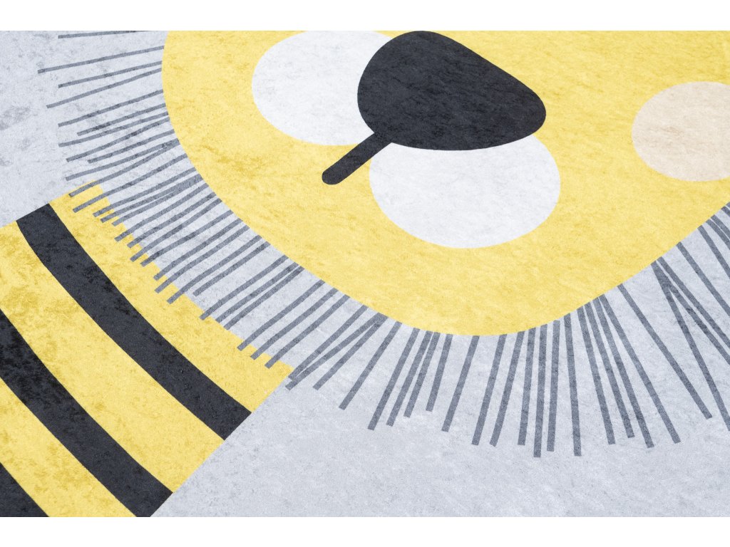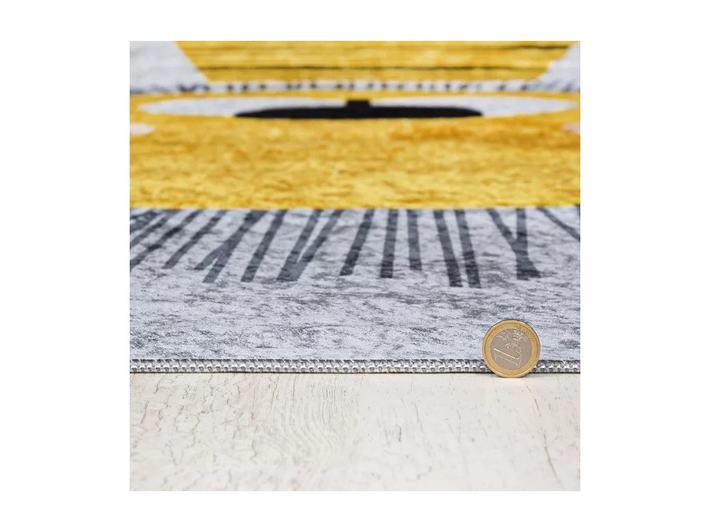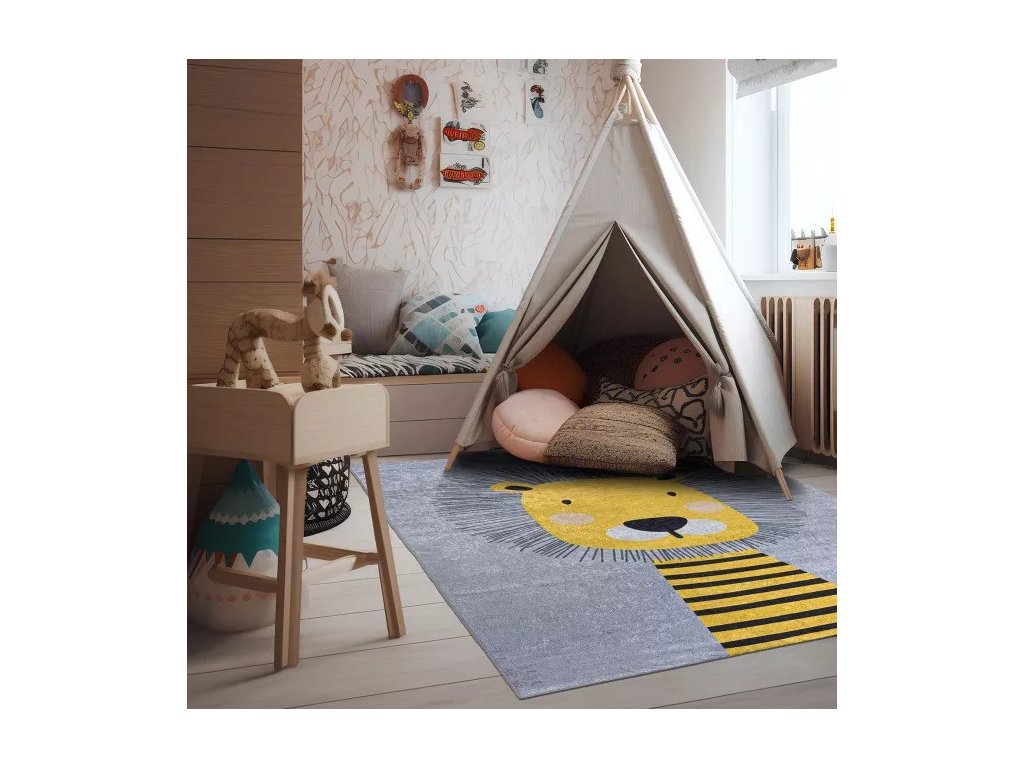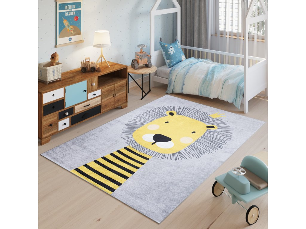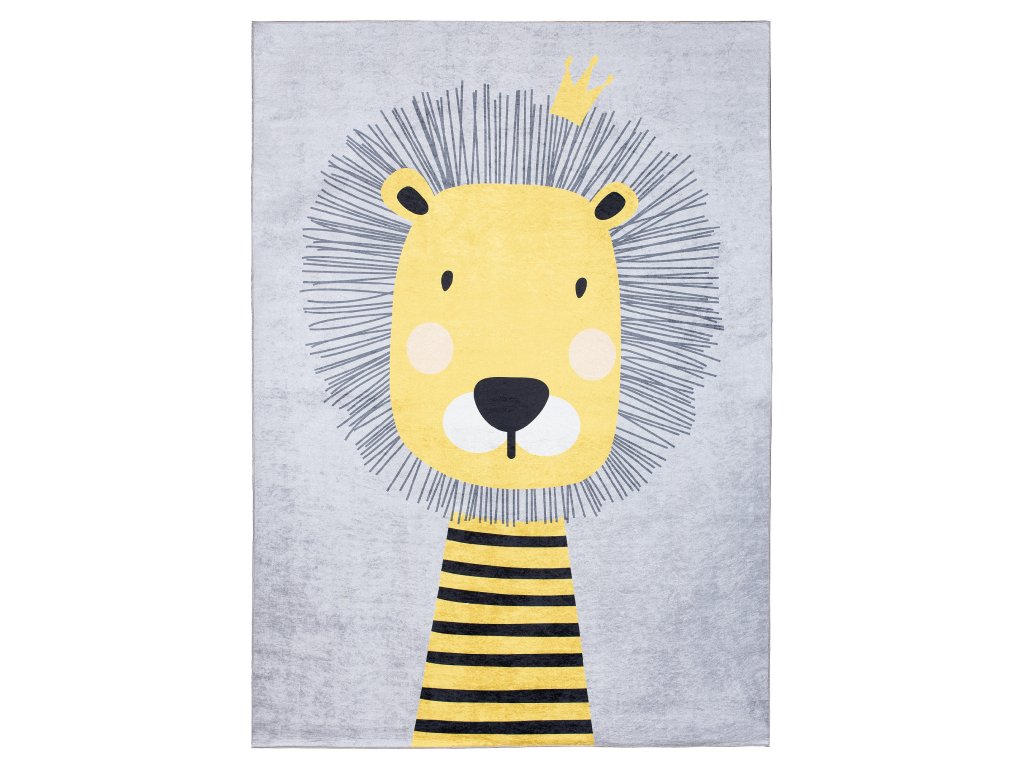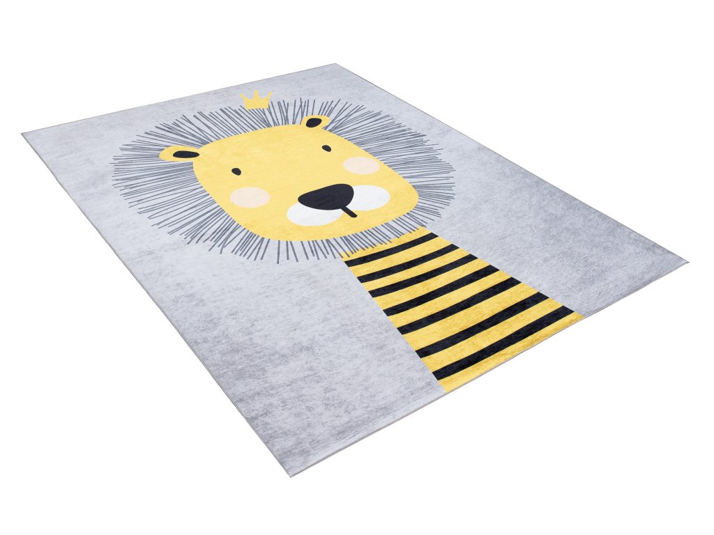 Dětský kusový koberec vhodný k praní BAMBINO 2028 Lvíček protiskluzový šedý žlutý