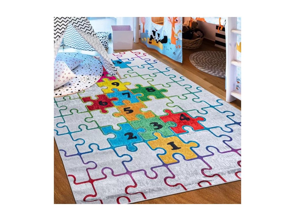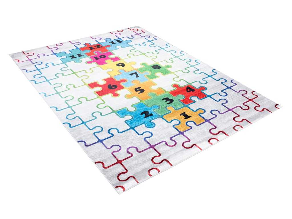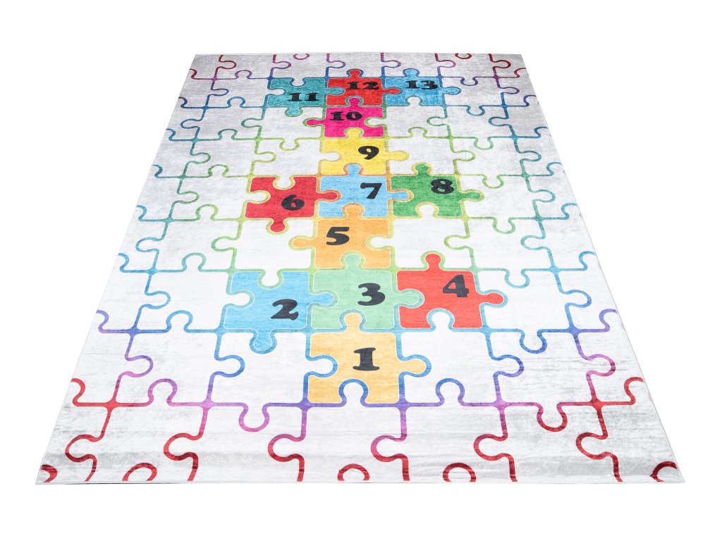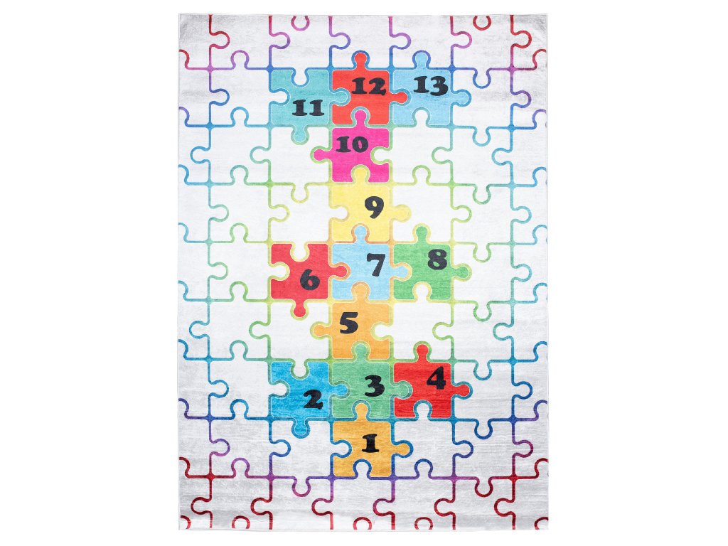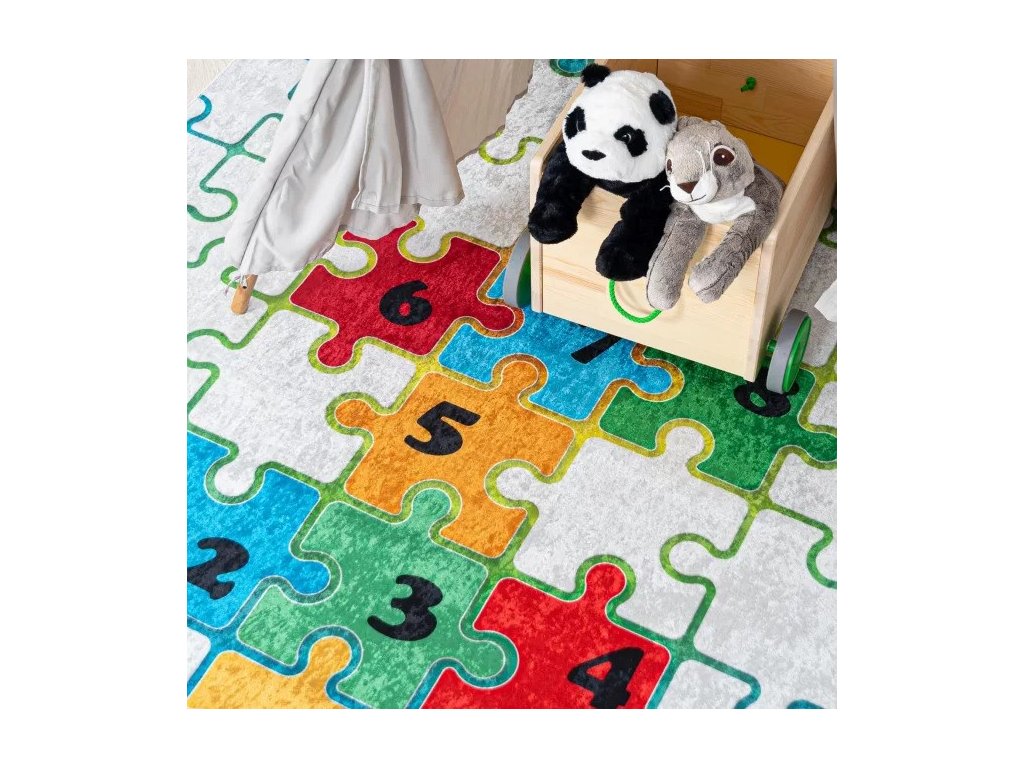 Dětský kusový koberec vhodný k praní BAMBINO 2673 Puzzle Číslice pogumovaný krémový barevný