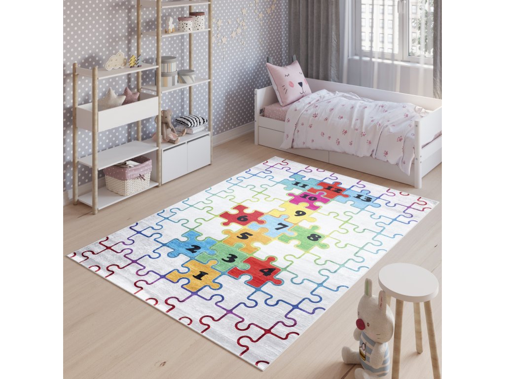 Dětský kusový koberec vhodný k praní BAMBINO 2673 Puzzle Číslice pogumovaný krémový barevnýKoberec je doplněk, který svým krásným vzhledem dokáže změnit každý interiér. Důležité je, aby kromě funkce estetické plnily i funkce praktické.