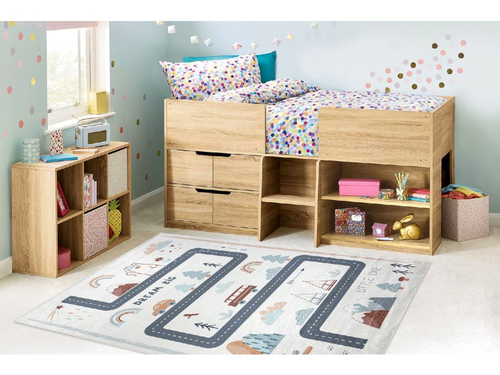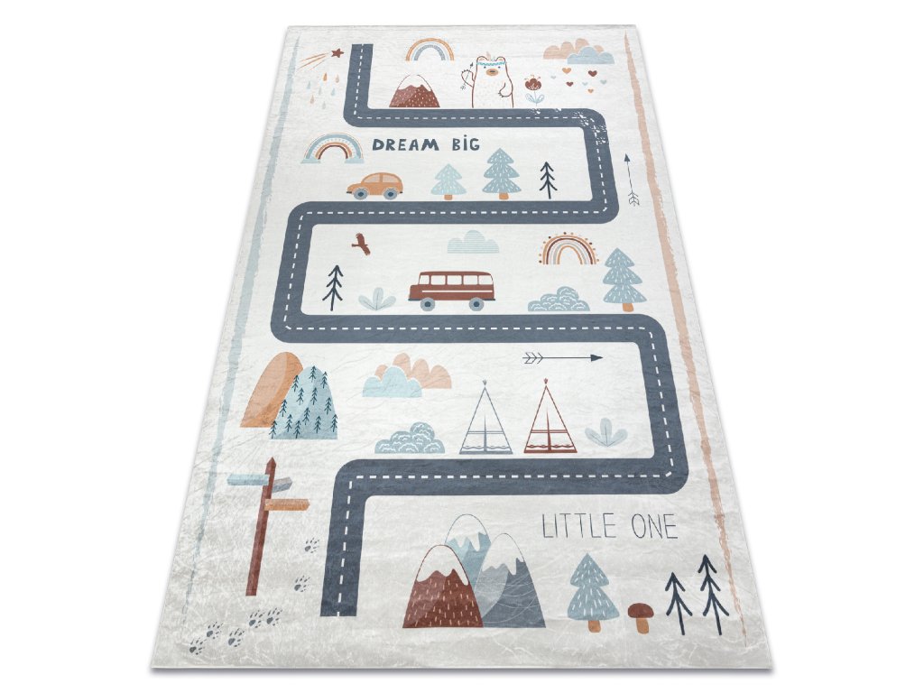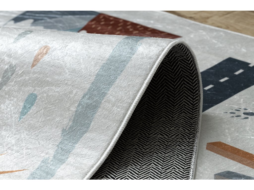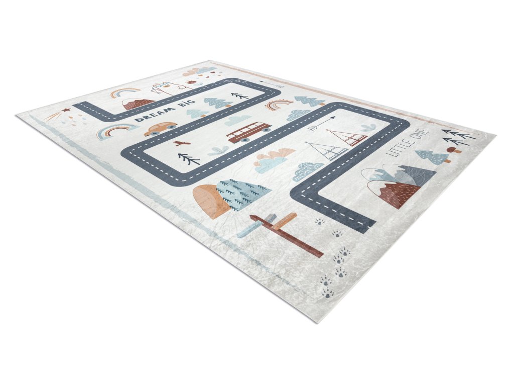 Dětský kusový koberec vhodný k praní BAMBINO 46980 Les Ulice Auta bílý zelenýKoberec je doplněk, který svým krásným vzhledem dokáže změnit každý interiér. Důležité je, aby kromě funkce estetické plnily i funkce praktické.
