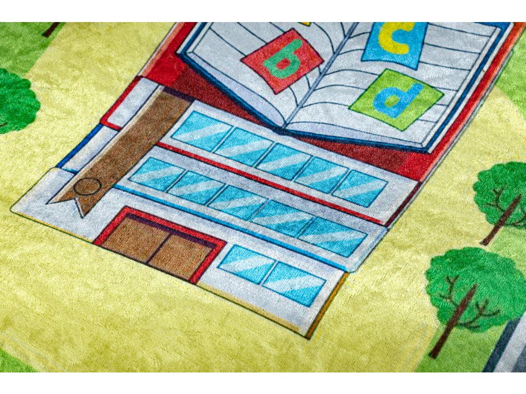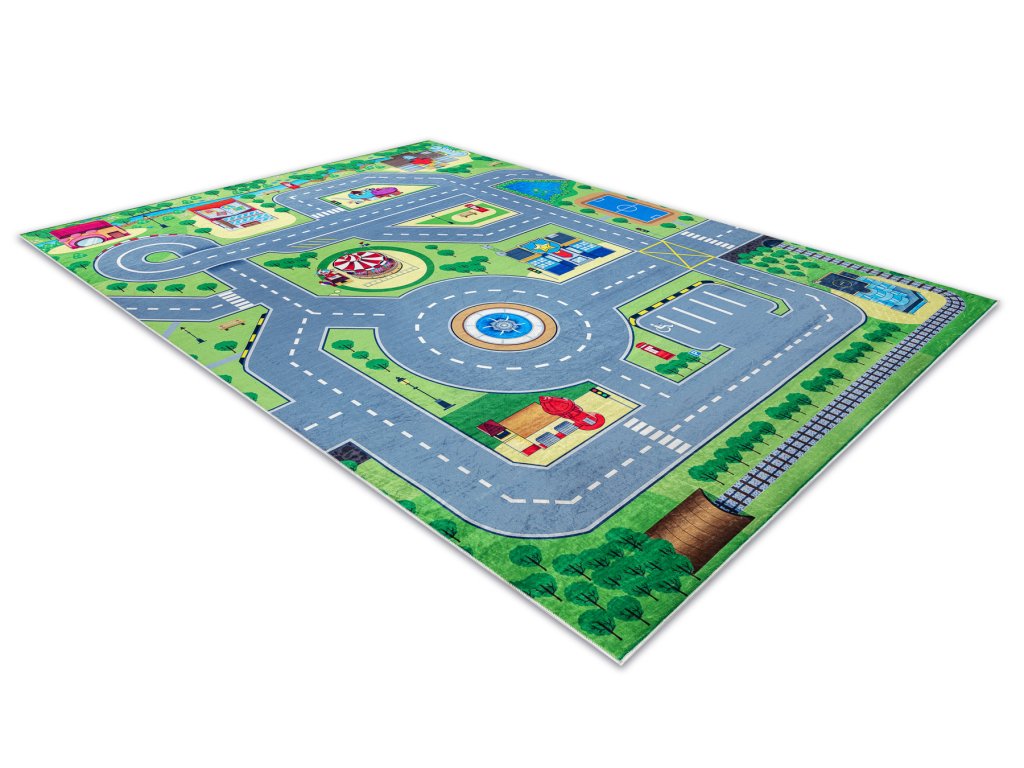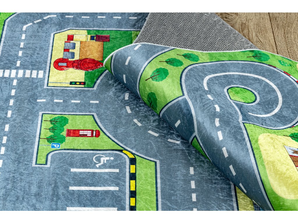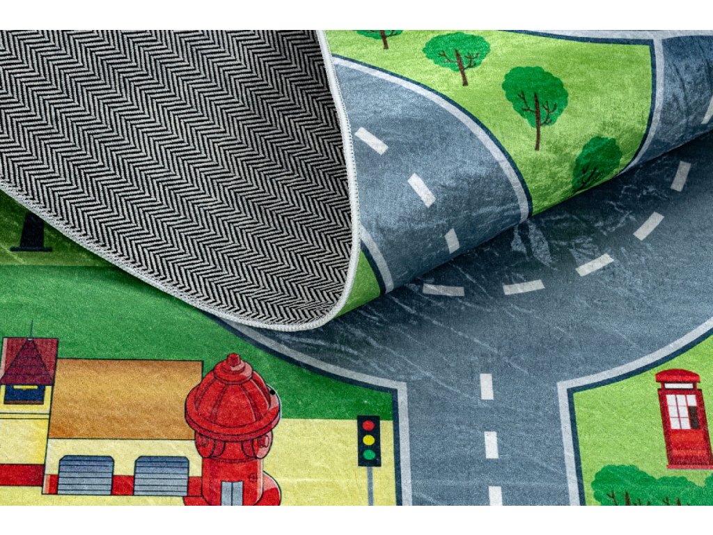 Dětský kusový koberec vhodný k praní BAMBINO 9028 Město Ulice Uličky zelený šedý