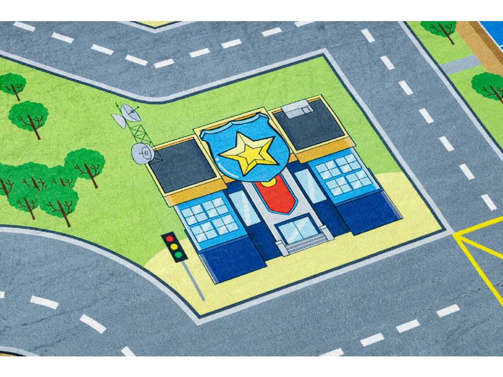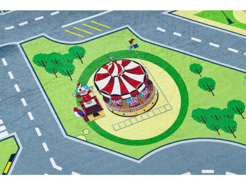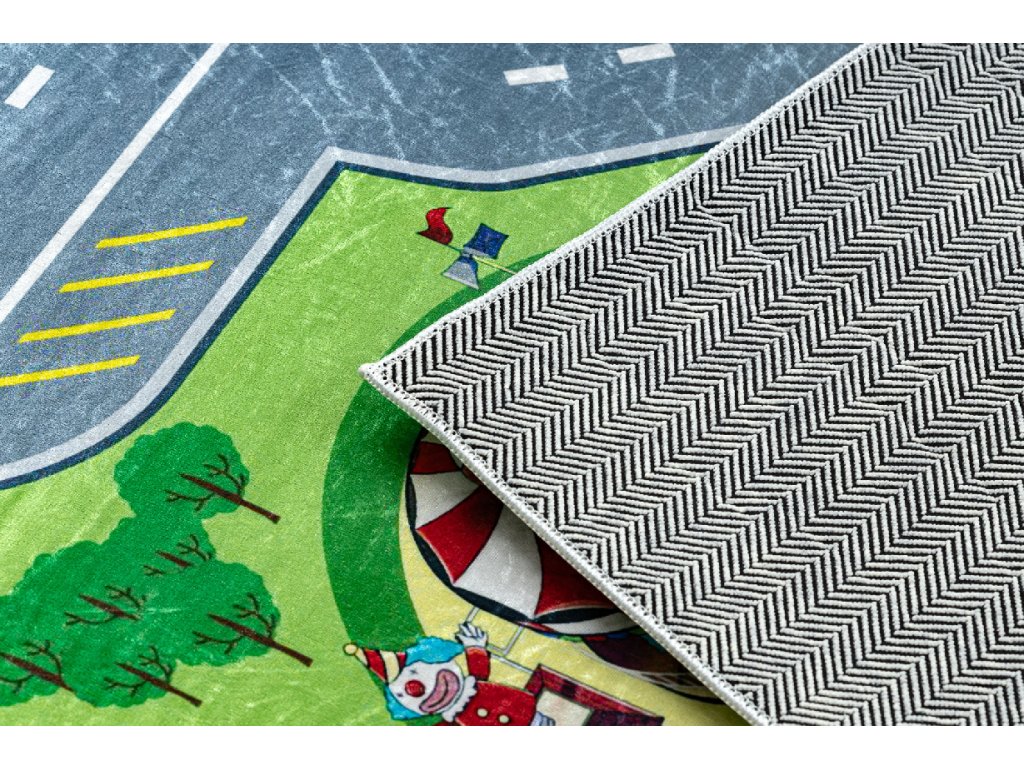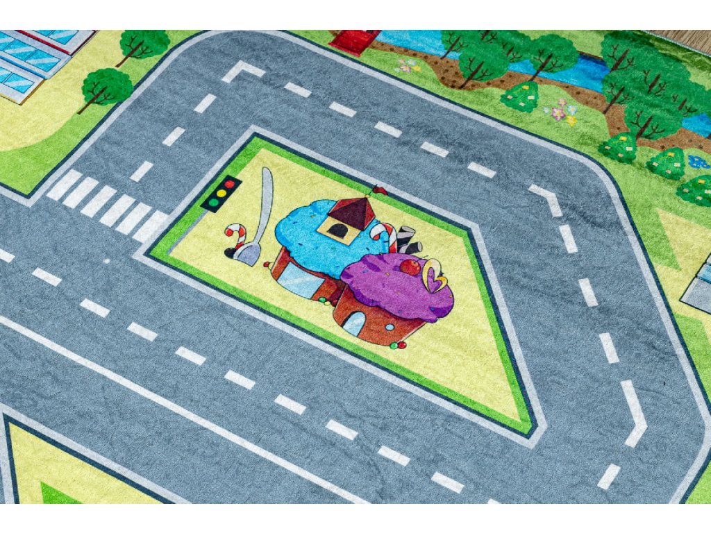 Dětský kusový koberec vhodný k praní BAMBINO 9028 Město Ulice Uličky zelený šedý