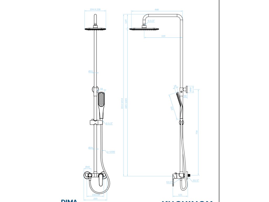 Model Dima umožňuje použití dešťové sprchové hlavice. Důležité je, že výšku horní sprchové hlavice lze nastavit tak, aby vyhovovala výšce členů domácnosti. Sloup má navíc kulový kloub, který umožňuje nastavit libovolný úhel sklonu dešťové sprchy. Je také vybavena keramickým přepínačem sprchy, díky kterému můžete jedním rychlým pohybem změnit zdroj proudu z ruční sprchy na dešťovou sprchu (a naopak). Tento spínač funguje nezávisle na tlaku vody.