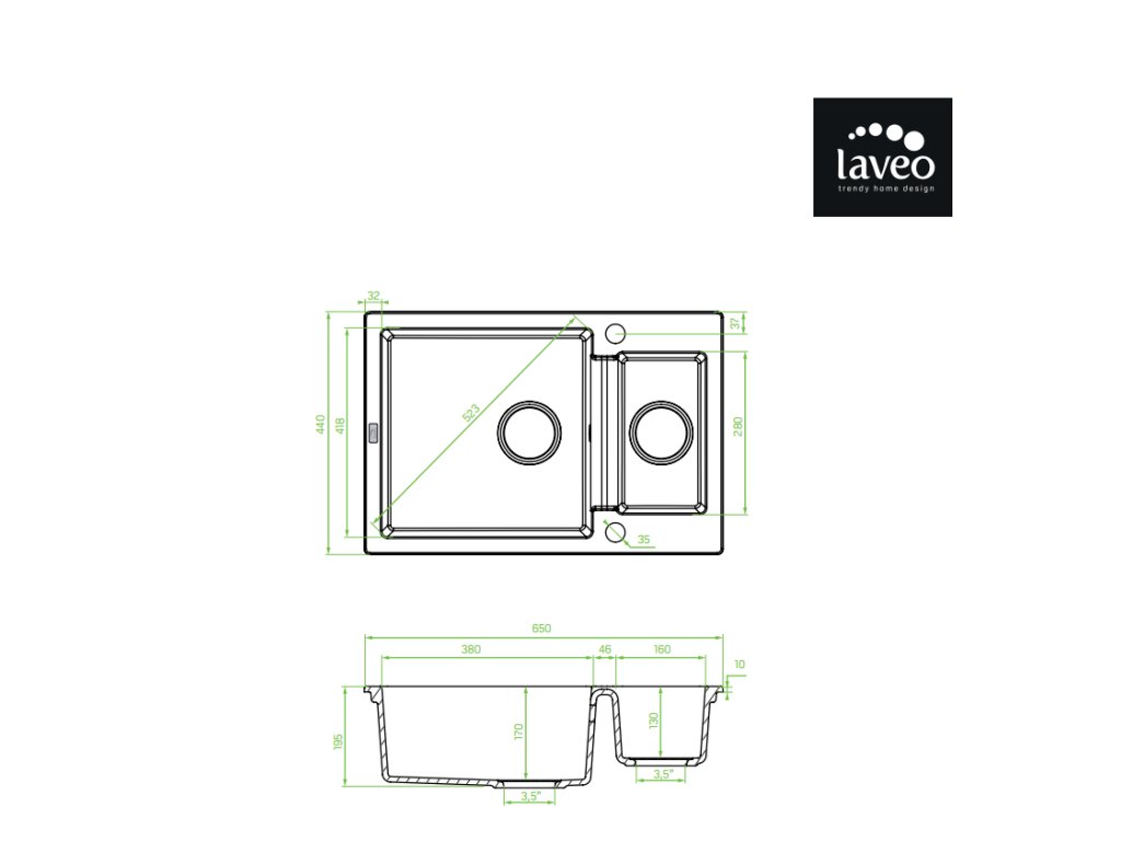 Dřez s 1,5 dřezy, s větší dřezem o hloubce 170 mm a o něco mělčím dřezem o hloubce 130 mm, představuje skutečnou revoluci v kuchyňském prostoru. Produkt kombinující funkčnost a pohodlí při používání. Větší komora je ideální pro mytí velkých hrnců, pánví nebo plechů na pečení, které vyžadují více místa a vody.