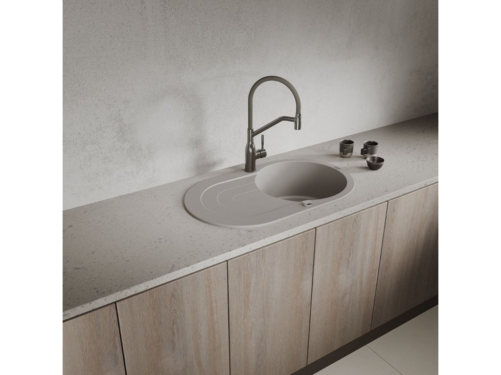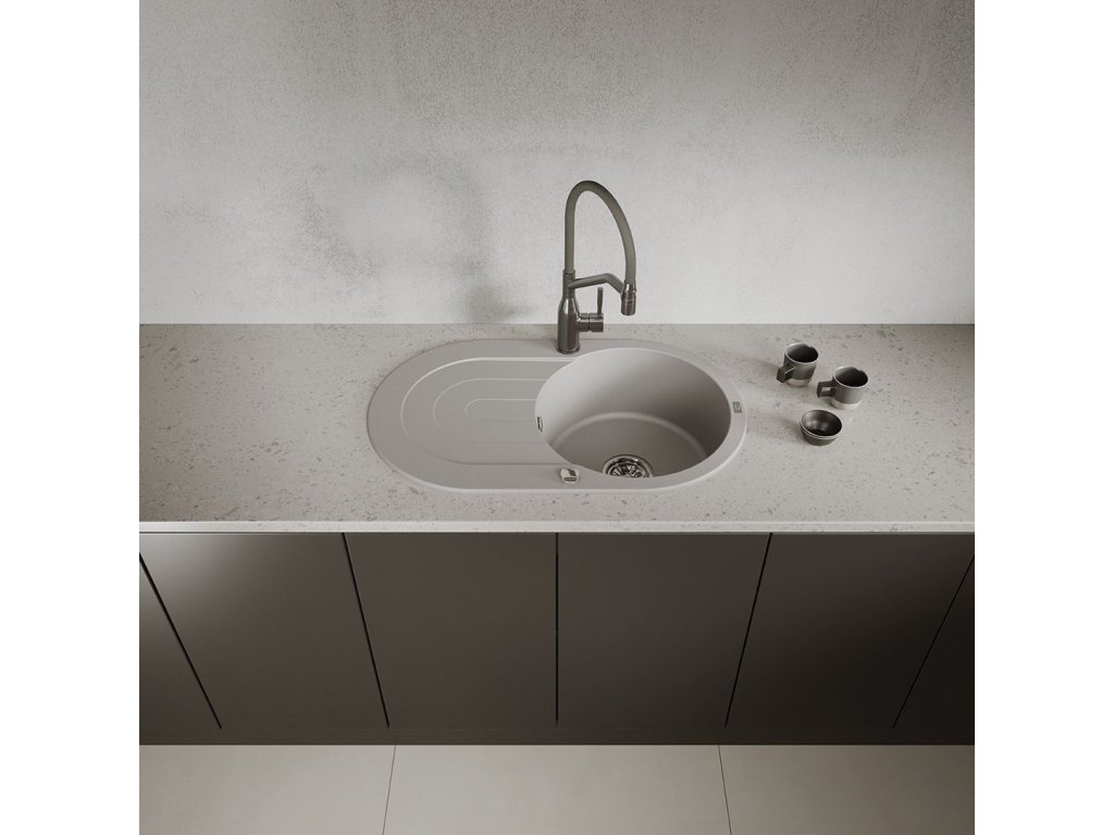 Dřez granitový Dafne - jednodřezový s odkapávačem 47x78 cm se sifonem šedý