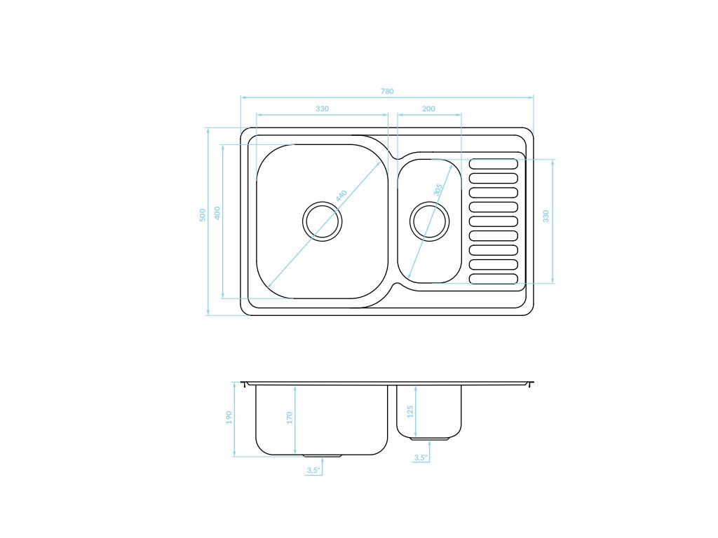 | Hloubka dřezu (mm): | 170 a 125 |