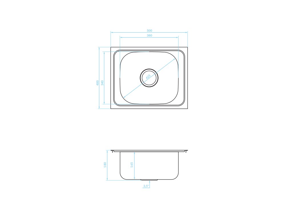 Orion je obdélníkový dřez s jednou mísou, určený pro zapuštěnou instalaci. Jeho rozměry jsou 40 x 50 x 18 cm. Lze jej tedy instalovat do skříňky o šířce 50 cm. Dřez má 3,5palcový odtok a přepad v míse, což minimalizuje riziko úniku vody mimo dřez. Zapuštěný model Orion má také výstup pro připojení myčky nádobí. Není však vybaven odkapávačem, což také šetří cenné místo na pracovní desce.
