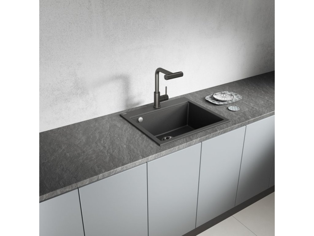 Černý jednodřez TAU je ideálním prvkem pro moderní, industriální kuchyně, ale bude se dobře hodit i do mnoha dalších stylů interiérového designu. Jeho elegantní matný povrch dodává interiéru noblesu a modernitu.