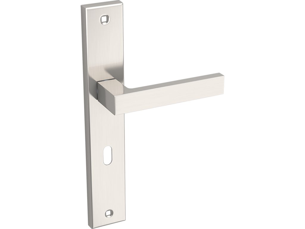 Dveřní kování QUBIK klíč satynaQubik jsou dveřní kliky s geometrickým, symetrickým tvarem, jejichž model se bude dobře hodit do jakéhokoli interiéru.