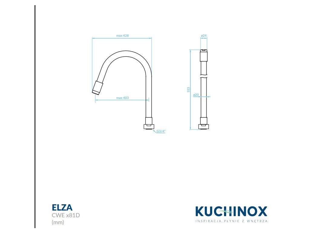 Kuchyňské baterie řady Elza od Kuchinoxu s flexibilním výtokem jsou vizuálně působivým řešením a zároveň jsou velmi praktické pro každodenní použití v kuchyni. Řada má flexibilní výtoky a je k dispozici ve volně stojící i nástěnné verzi. Univerzální barevné provedení umožňuje snadné sladění s jakýmkoli stylem kuchyně, moderním i klasickým. Baterie mají chromové prvky, takže baterii můžeme sladit s ocelovým dřezem. Flexibilní výtoky jsou k dispozici v univerzálních barvách, jako je béžová, šedá a černá, takže si baterii můžete sladit s vaším žulovým dřezem. Vodovodní baterie s flexibilním výtokem kombinují funkčnost s estetickým vzhledem.