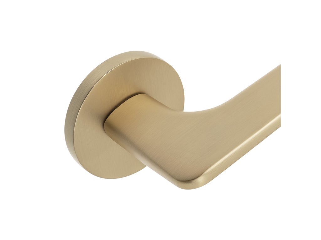 Díky svému štíhlému tvaru a zlaté povrchové úpravě dodává klika Celestria eleganci klasickým i moderním prostorům. Kartáčované zlato ladí s širokou škálou barev dveří a interiéru a dodává jemný lesk, který dokonale doplňuje dřevo, sklo nebo kov.