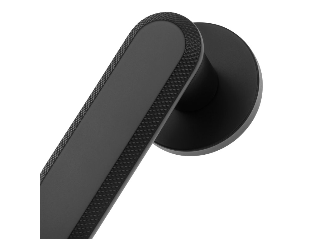 Černá klika Rugos je vyrobena z vysoce kvalitních materiálů, díky čemuž je odolná vůči každodennímu používání a poškrábání. Díky speciální technologii povrchové úpravy se rukojeť snadno udržuje – nezůstávají na ní otisky prstů a povrch zůstává dlouho hladký a estetický. Dveřní klika Rugos je zárukou odolnosti, která kombinuje design s funkčností a zajišťuje spolehlivost po mnoho let.