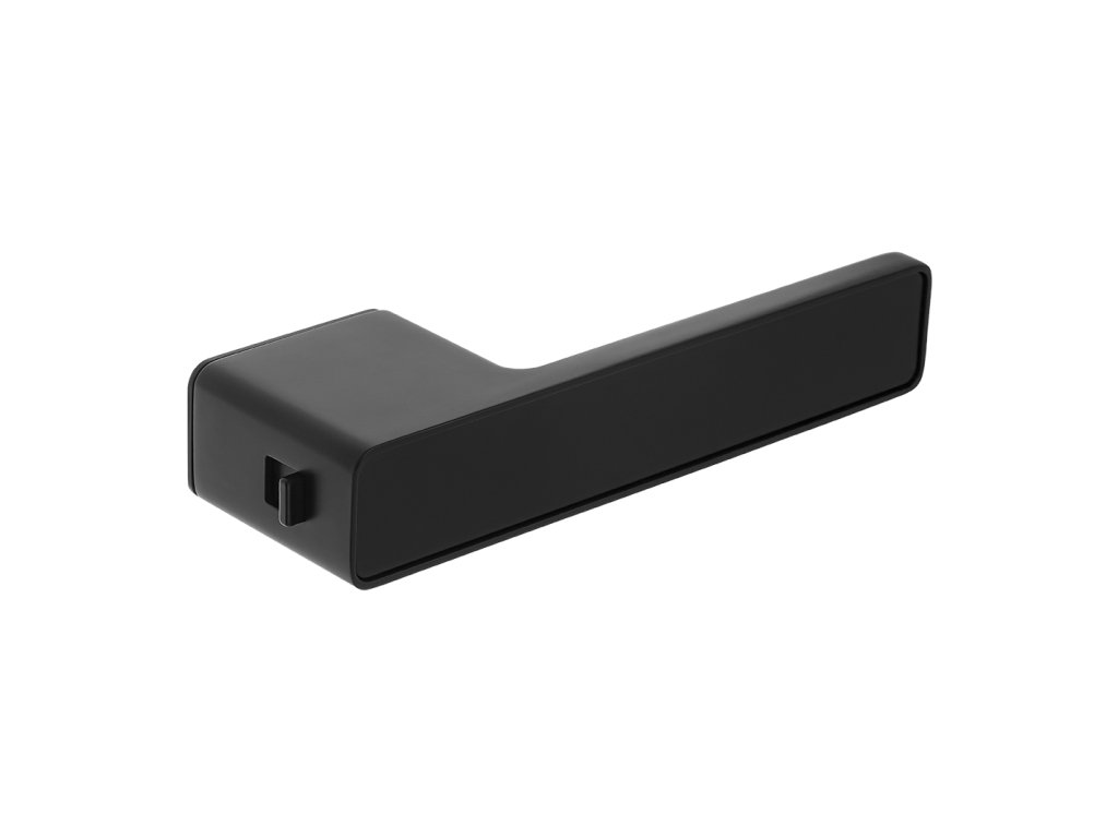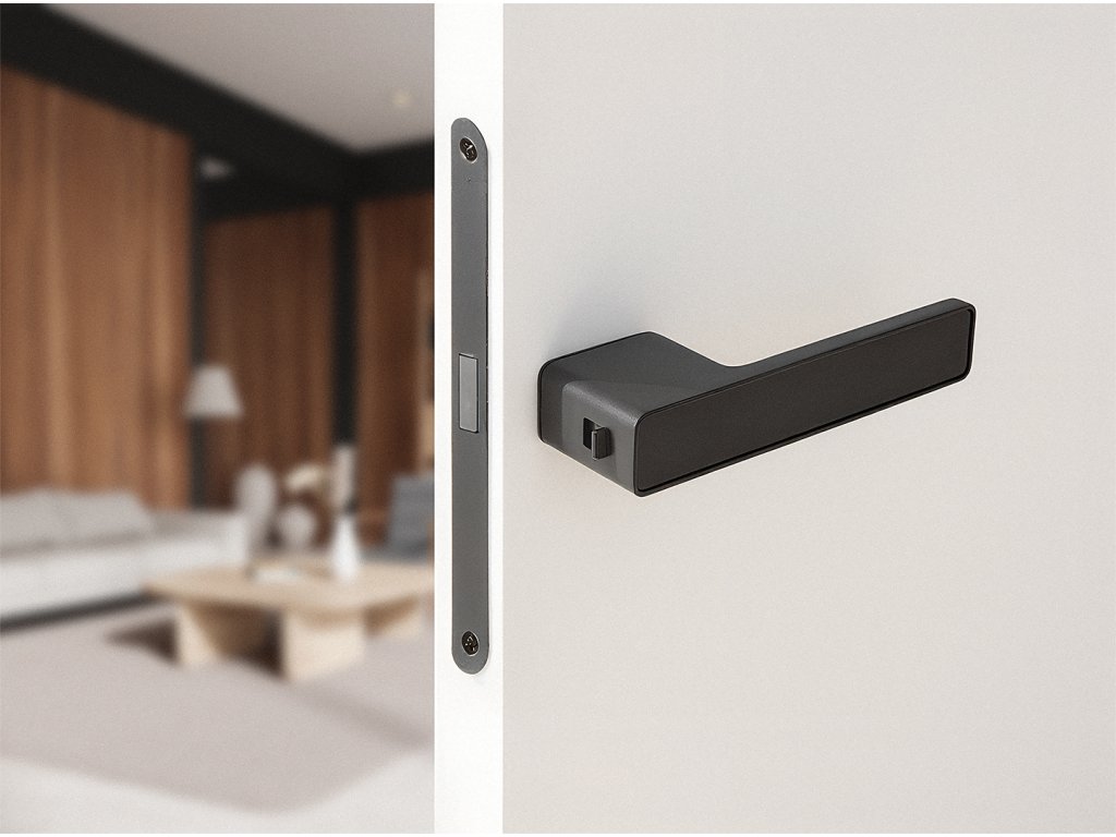 Zámek byl chytře skryt pod stylovým krytem, což umožňuje zachovat čistotu tvaru a výjimečnou eleganci. Uvnitř je průhledný posuvník zámku s indikací stavu (např. červená = zavřeno), takže uživatel vždy ví, zda je místnost obsazená.