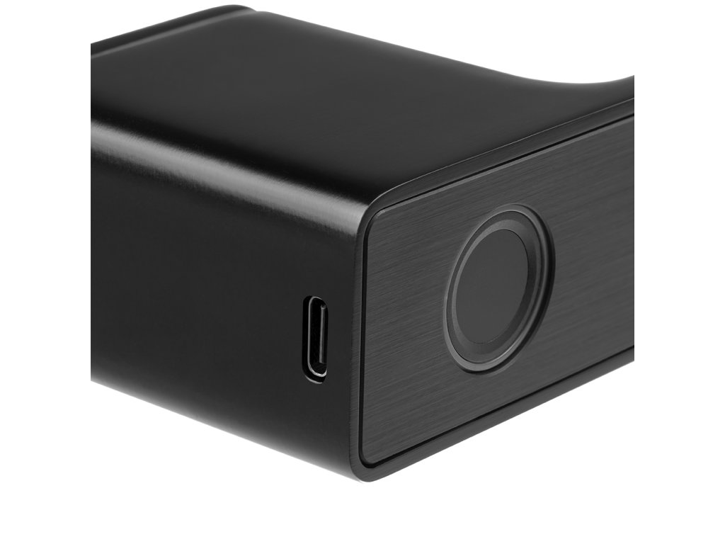 TOCCO je napájeno vestavěnou lithium-iontovou baterií, kterou lze pohodlně nabíjet přes port USB-C. Jedno plné nabití vydrží několik měsíců používání, takže odpadá nutnost časté výměny baterií. Pro případ vybití zařízení je k dispozici mechanický zámek pro dodatečné zabezpečení.