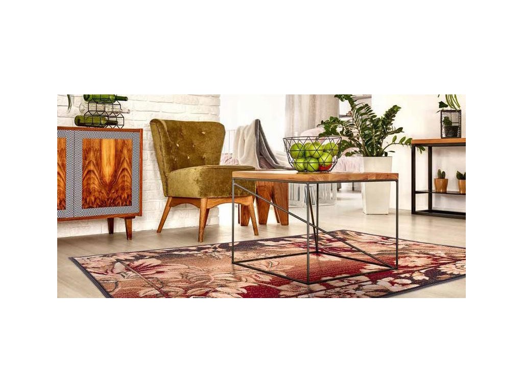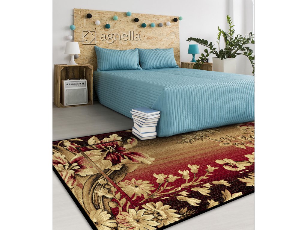 Koberec Agnella Optimal Datura Bordo s květinovým vzorem.