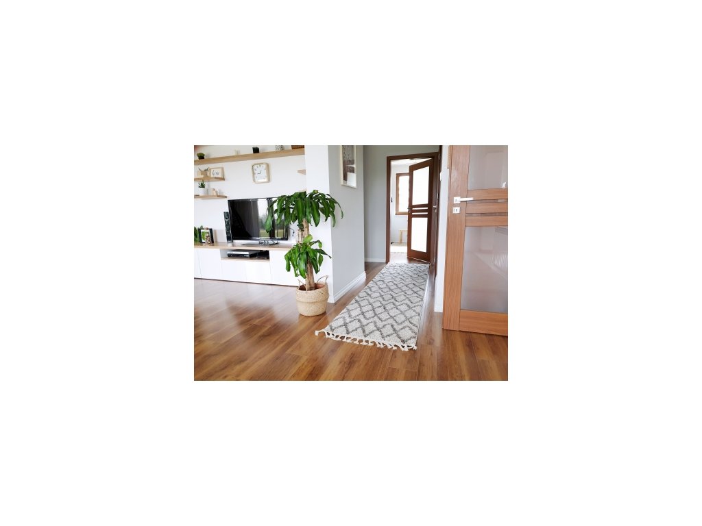 Koberec - běhoun BERBER BENI krémový s moderním geometrickým vzorem vhodný do kuchyně, chodby.