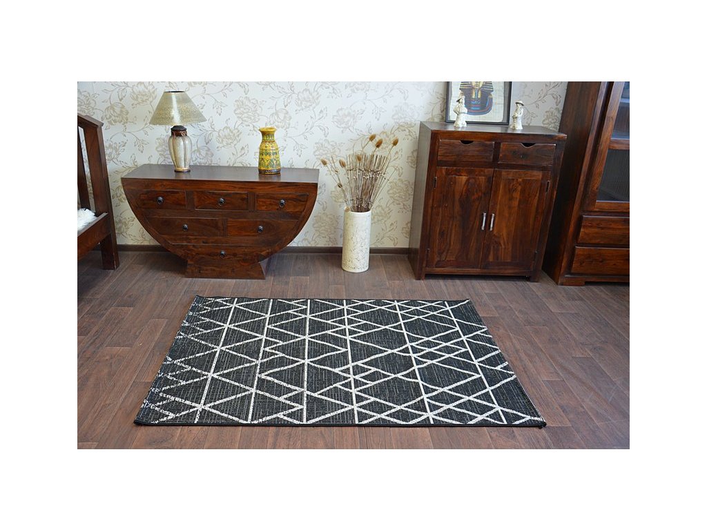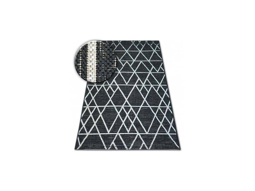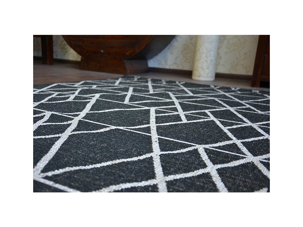 Koberec SISAL FLOORLUX 20508 černý stříbrný s geometrickým vzorem.