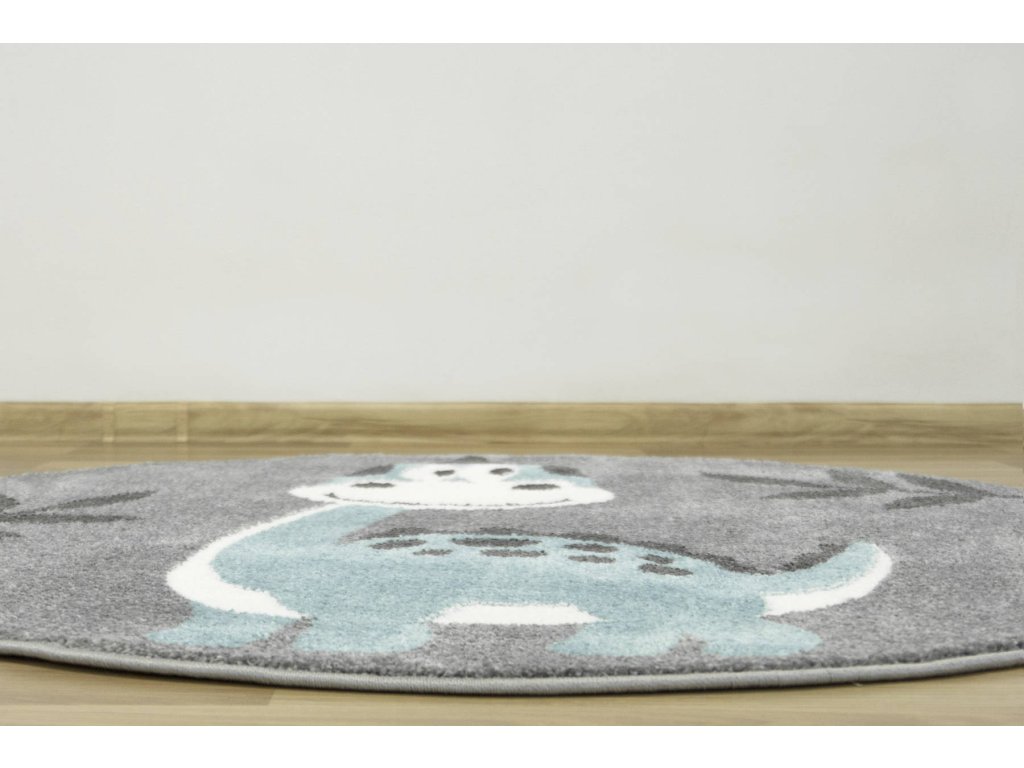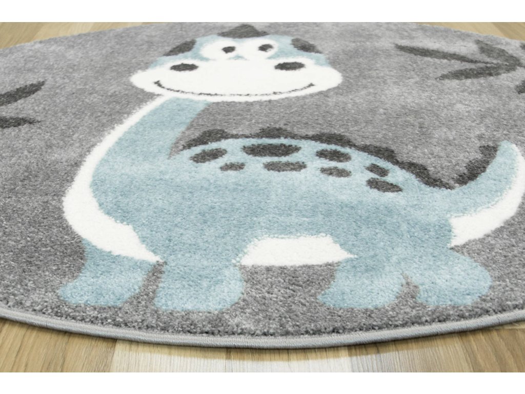 Kulatý dětský koberec Lima C880A Dinosaurus šedý modrý