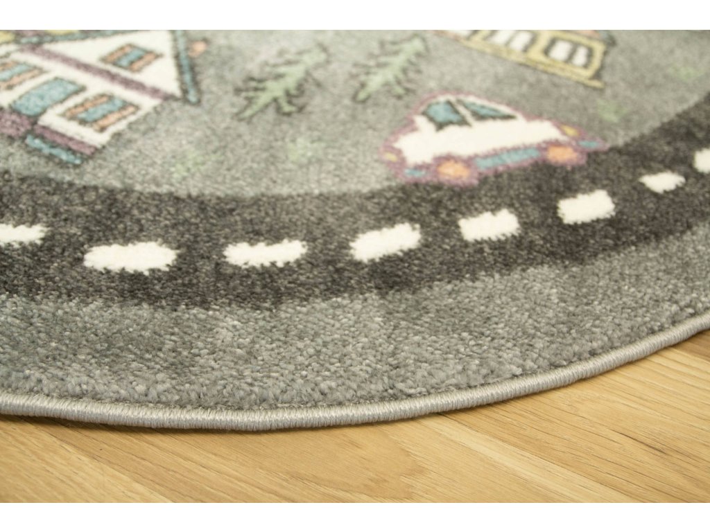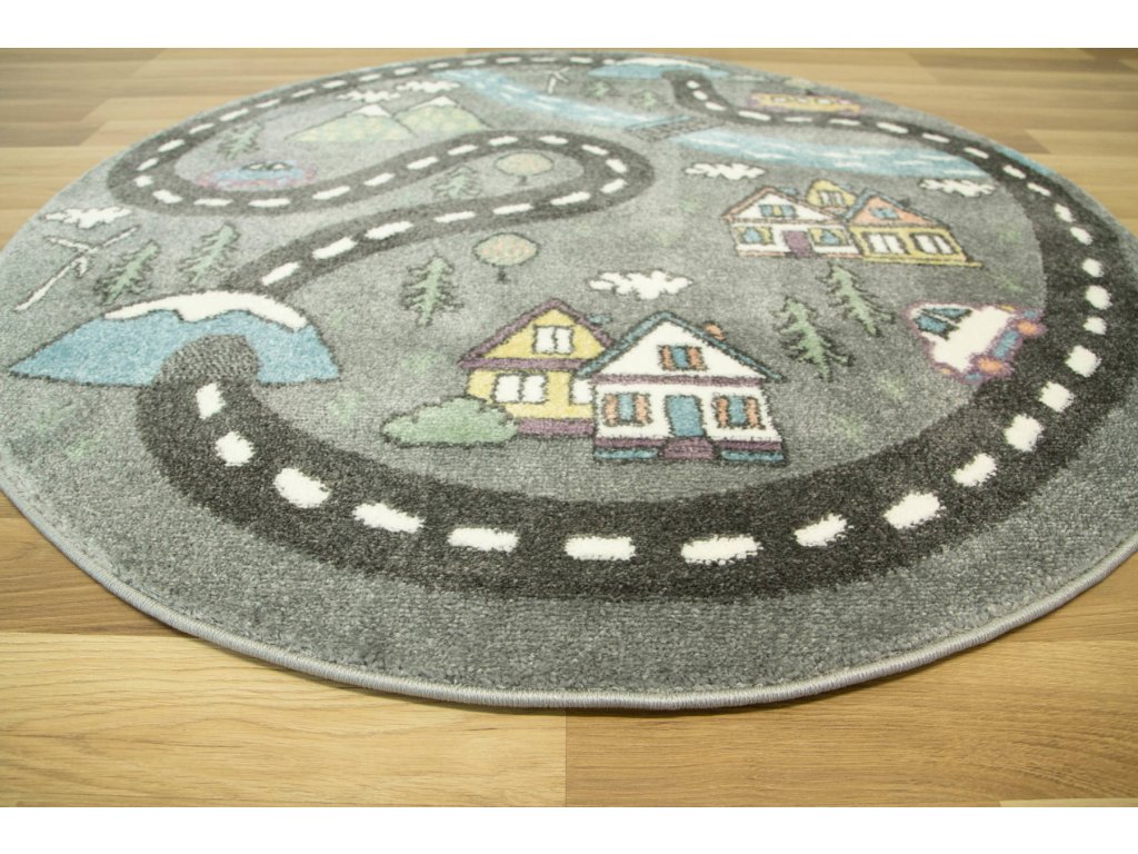 Kulatý dětský koberec Lima E182A Město Cesta Řeka šedý