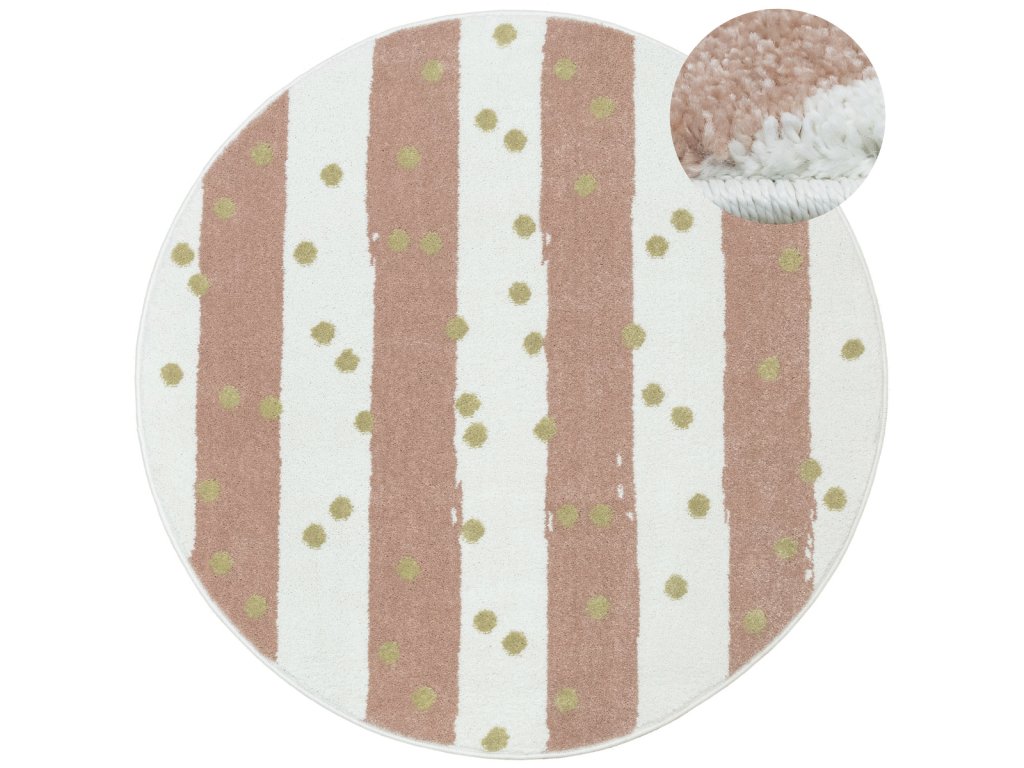 Kulatý dětský koberec Lima M044A Pruhy Tečky krémový růžový