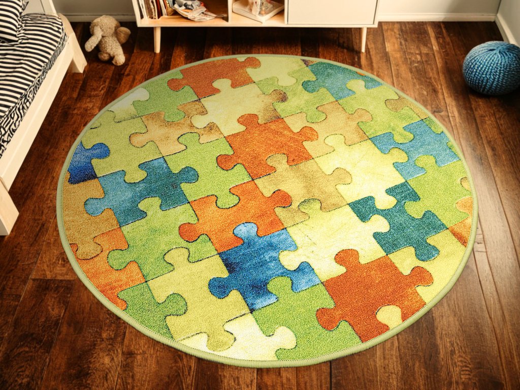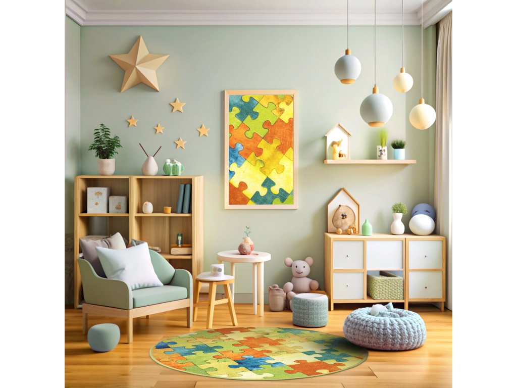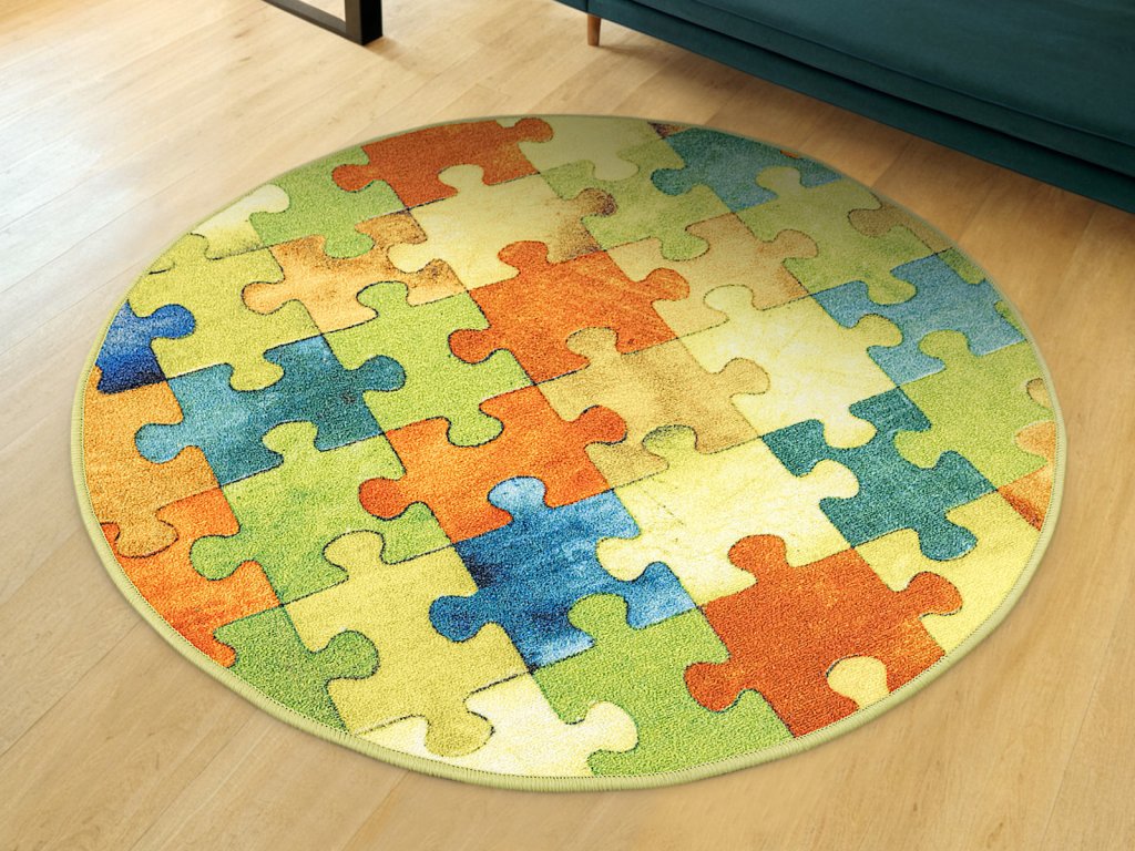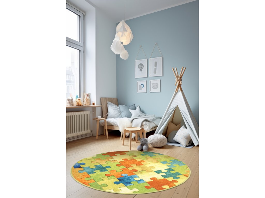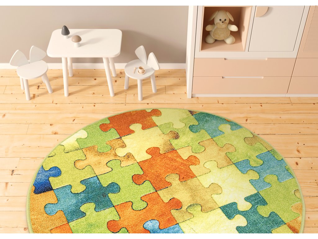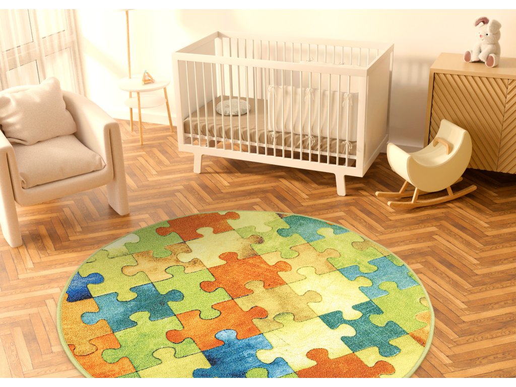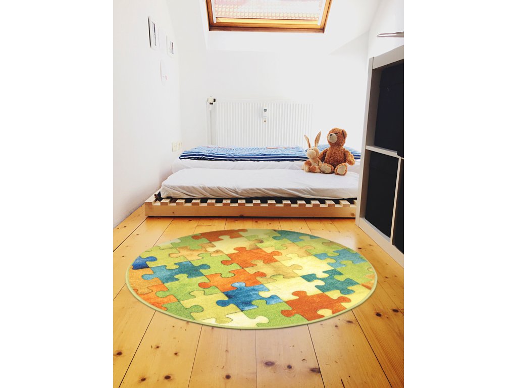 Kulatý dětský koberec Puzzle multicolor vícebarevný