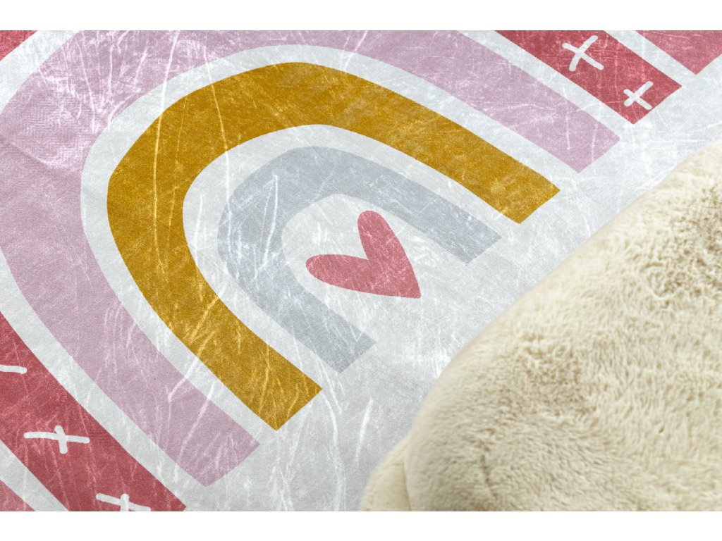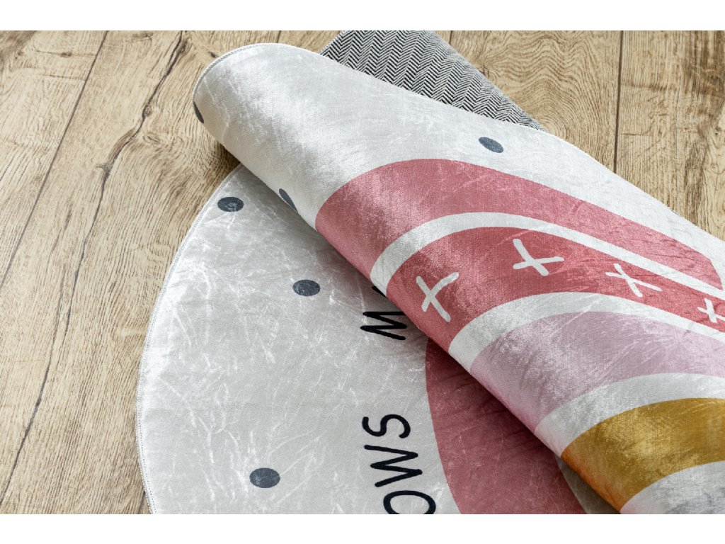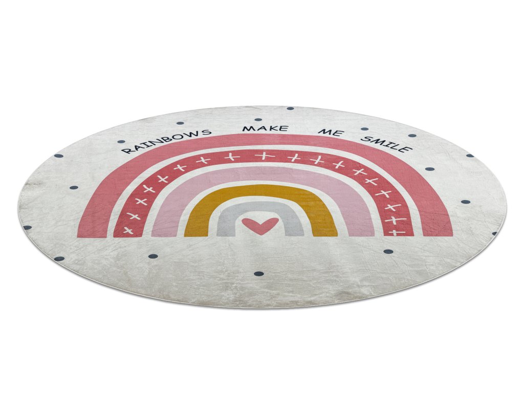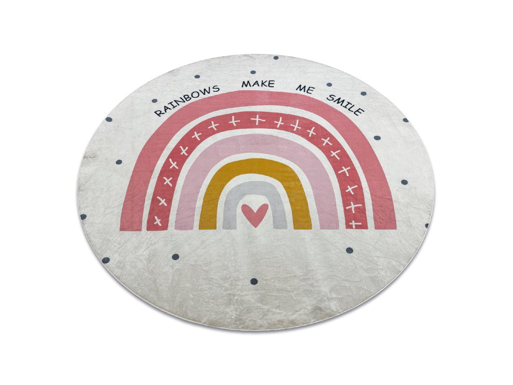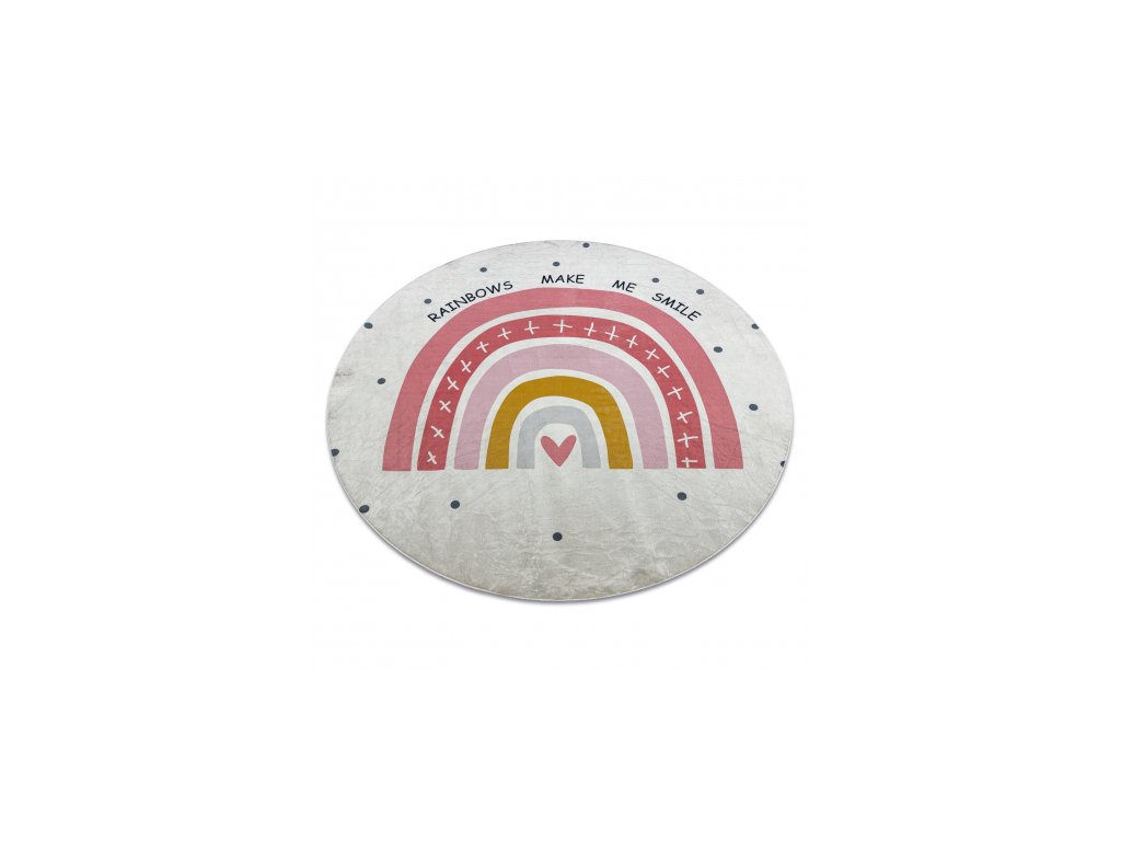 Kulatý dětský koberec vhodný k praní BAMBINO 47810 Duha bílý růžový vícebarevný