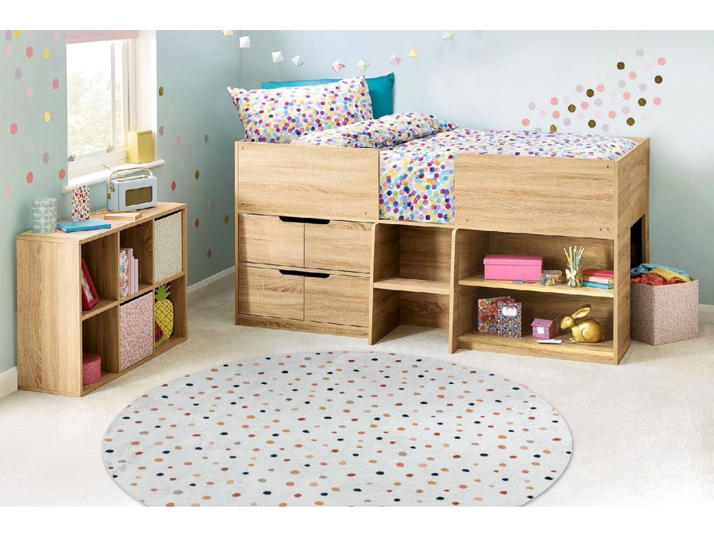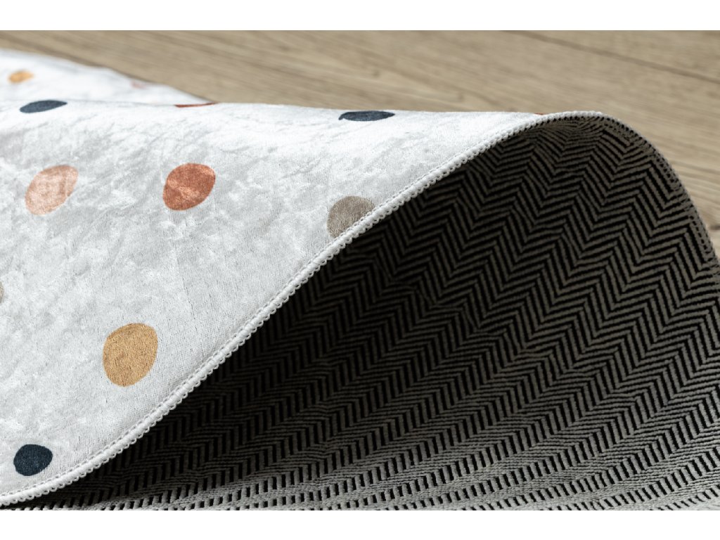 Kulatý dětský koberec vhodný k praní BAMBINO 47890 Tečky bílý hnědý