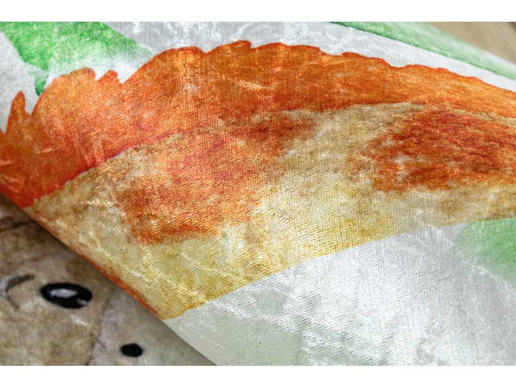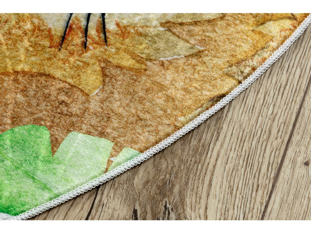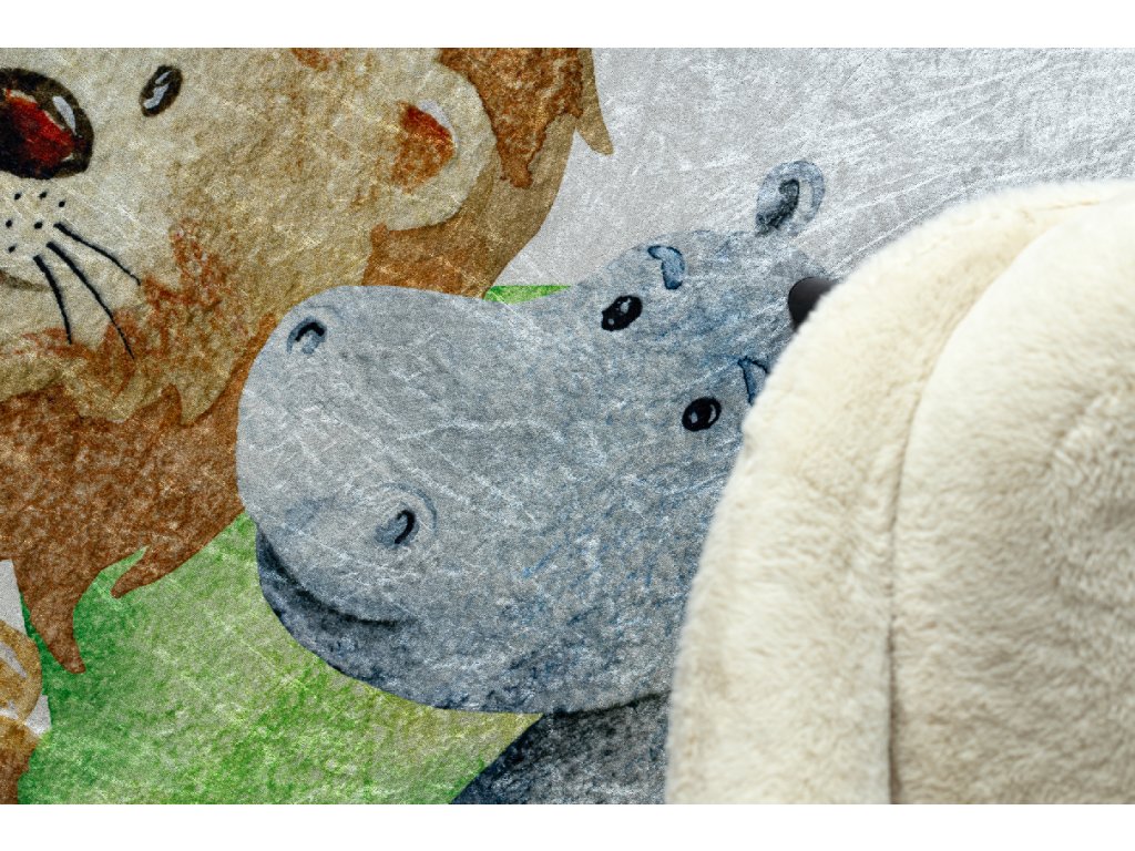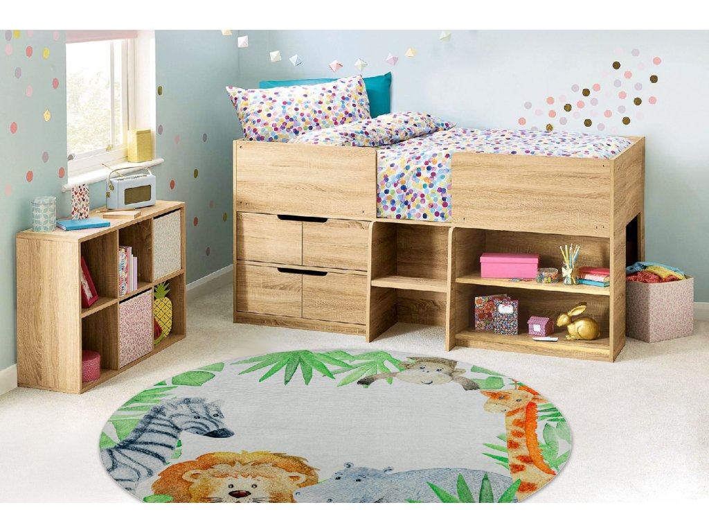 Kulatý dětský koberec vhodný k praní BAMBINO 54090 Hroch Lev Žirafa Opička bílý zelený