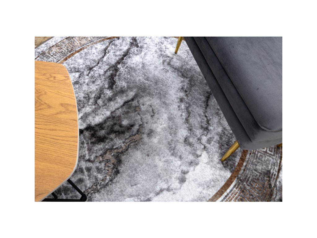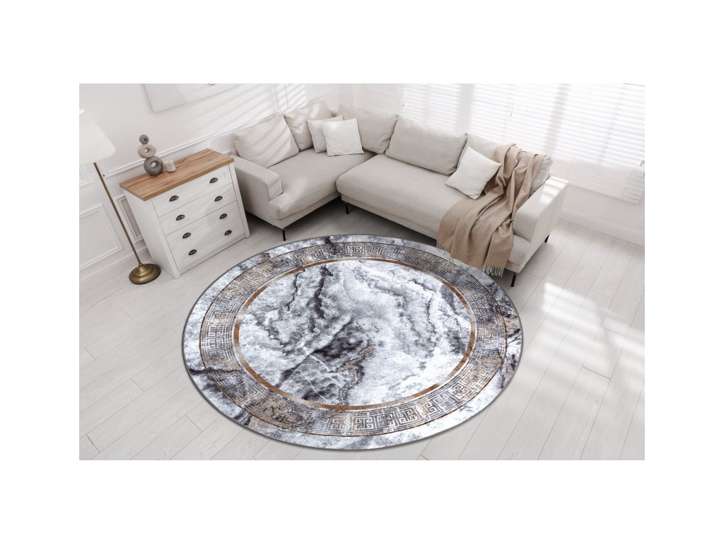 Kulatý koberec pratelný MIRO 51199.805 Mramor protiskluzový šedý zlatý