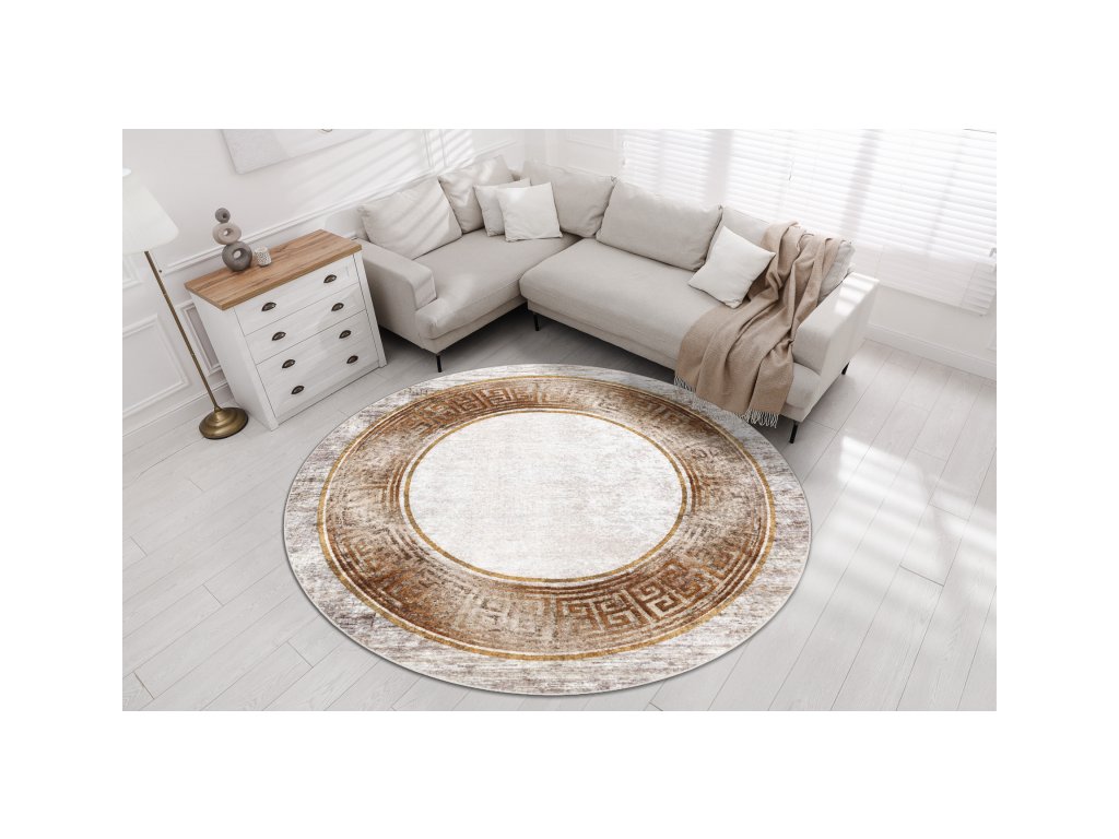 Kulatý koberec pratelný MIRO 51236.807 Mramor Řecký vzor protiskluzový béžový zlatý