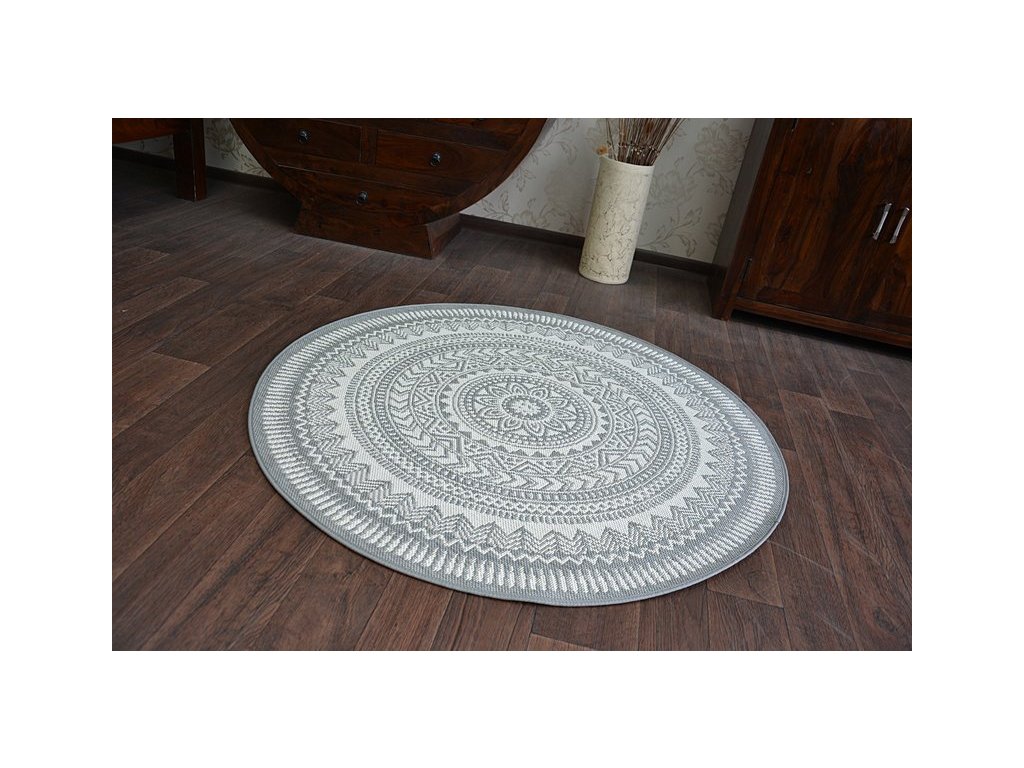Kulatý koberec Sisal FLAT 48695/637 šedý.