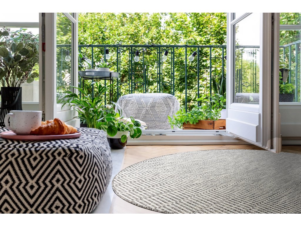 Kulatý koberec venkovní VERANDA KM26A Sisalový šedý hnědý